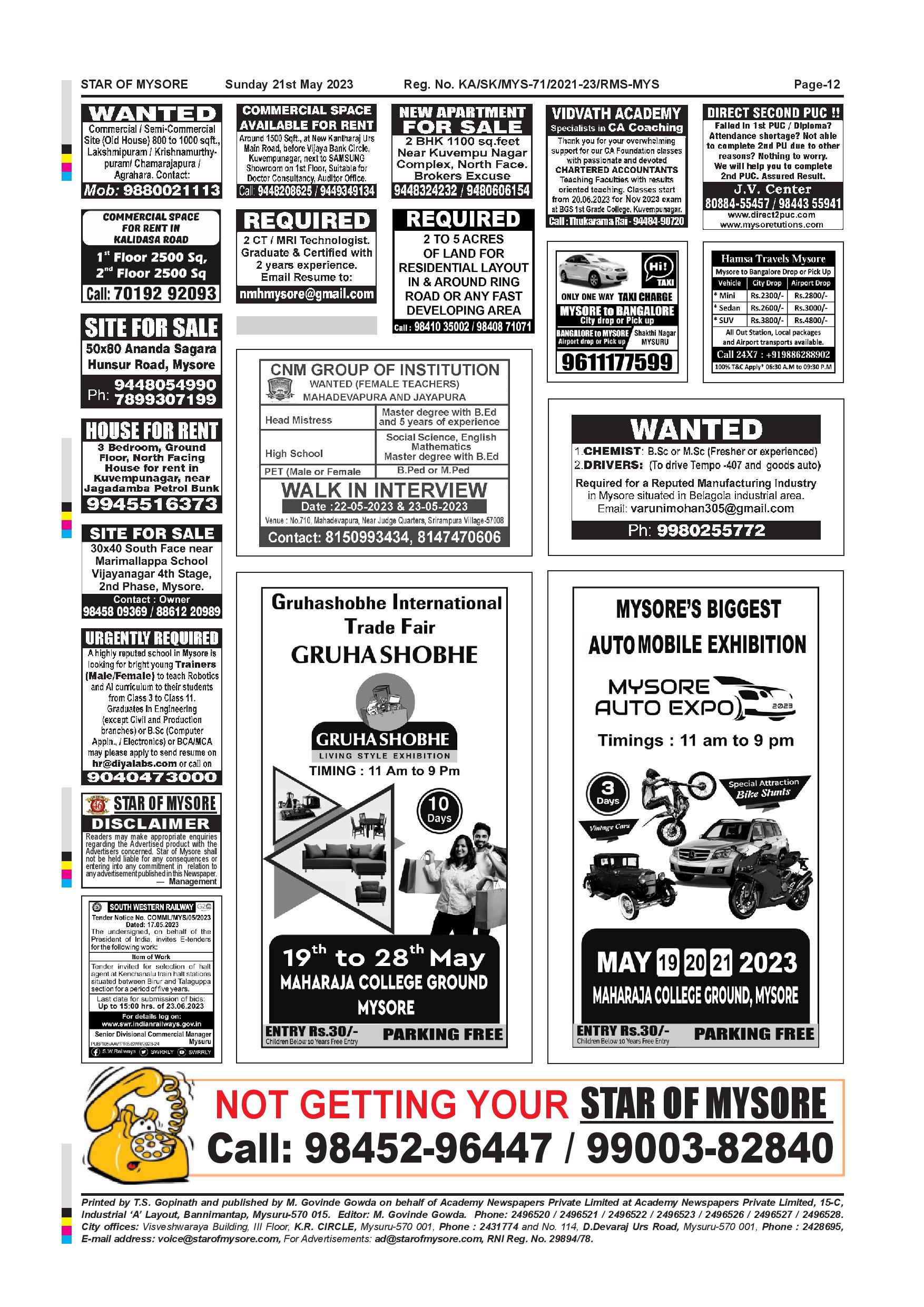 Star of Mysore Page: 11 May 21, 2023 << First << 11 >> Last >> Page 1Page 2Page 3Page 4Page 5Page 6Page 7Page 8Page 9Page 10Page 11 × Star of Mysore << First << 11 >> Last >> Page-001Page-002Page-003Page-004Page-005Page-006-007Page-008Page-009Page-010Page-011Page-012 Page-012
