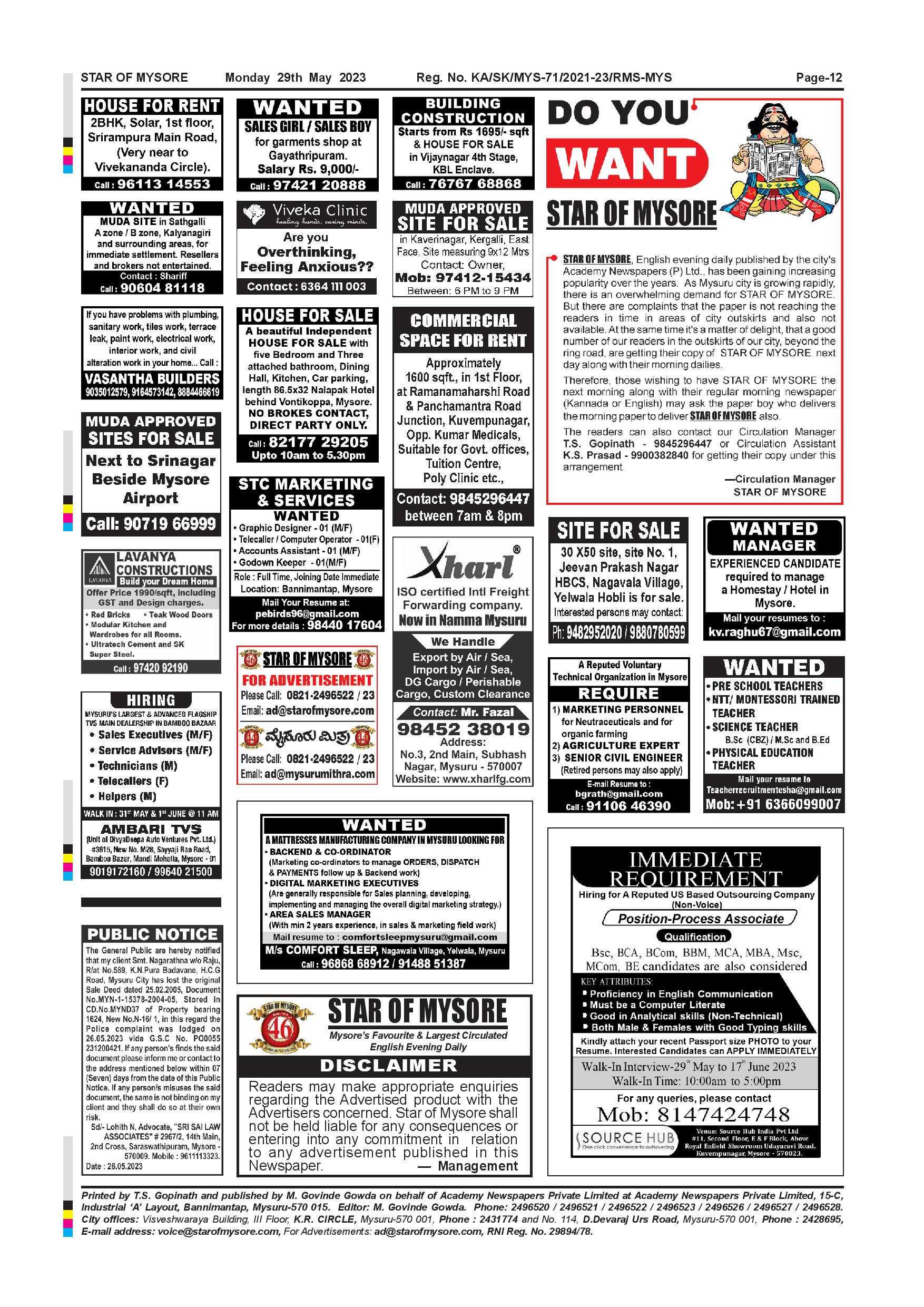 Star of Mysore Page: 11 May 29, 2023 << First << 11 >> Last >> Page 1Page 2Page 3Page 4Page 5Page 6Page 7Page 8Page 9Page 10Page 11 × Star of Mysore << First << 11 >> Last >> Page-001Page-002Page-003Page-004Page-005Page-006-007Page-008Page-009Page-010Page-011Page-012 Page-012