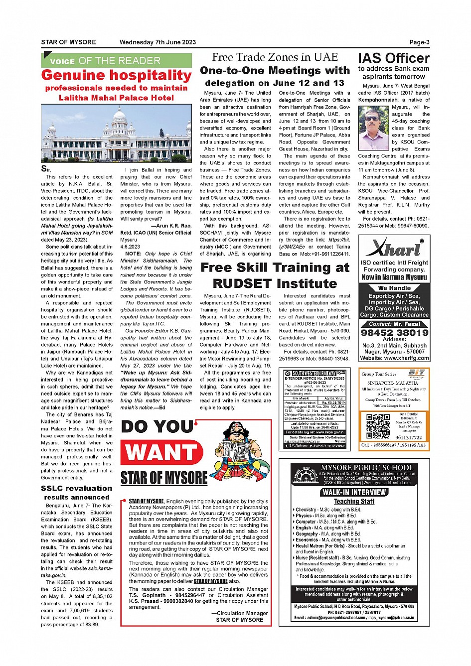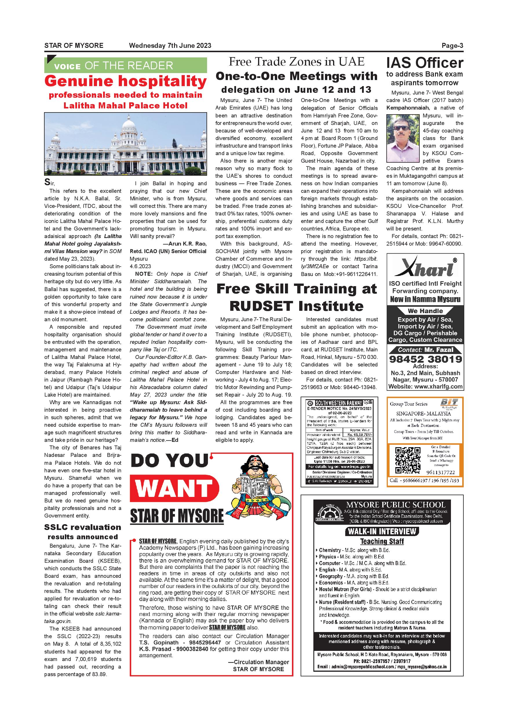 Star of Mysore Page: 3 June 07, 2023 << First << 3 >> Last >> Page 1Page 2Page 3Page 4Page 5Page 6Page 7Page 8Page 9Page 10Page 11Page 12 × Star of Mysore << First << 3 >> Last >> Page-001Page-002Page-003Page-004Page-005Page-006Page-007Page-008Page-009Page-010Page-011Page-012 Page-003