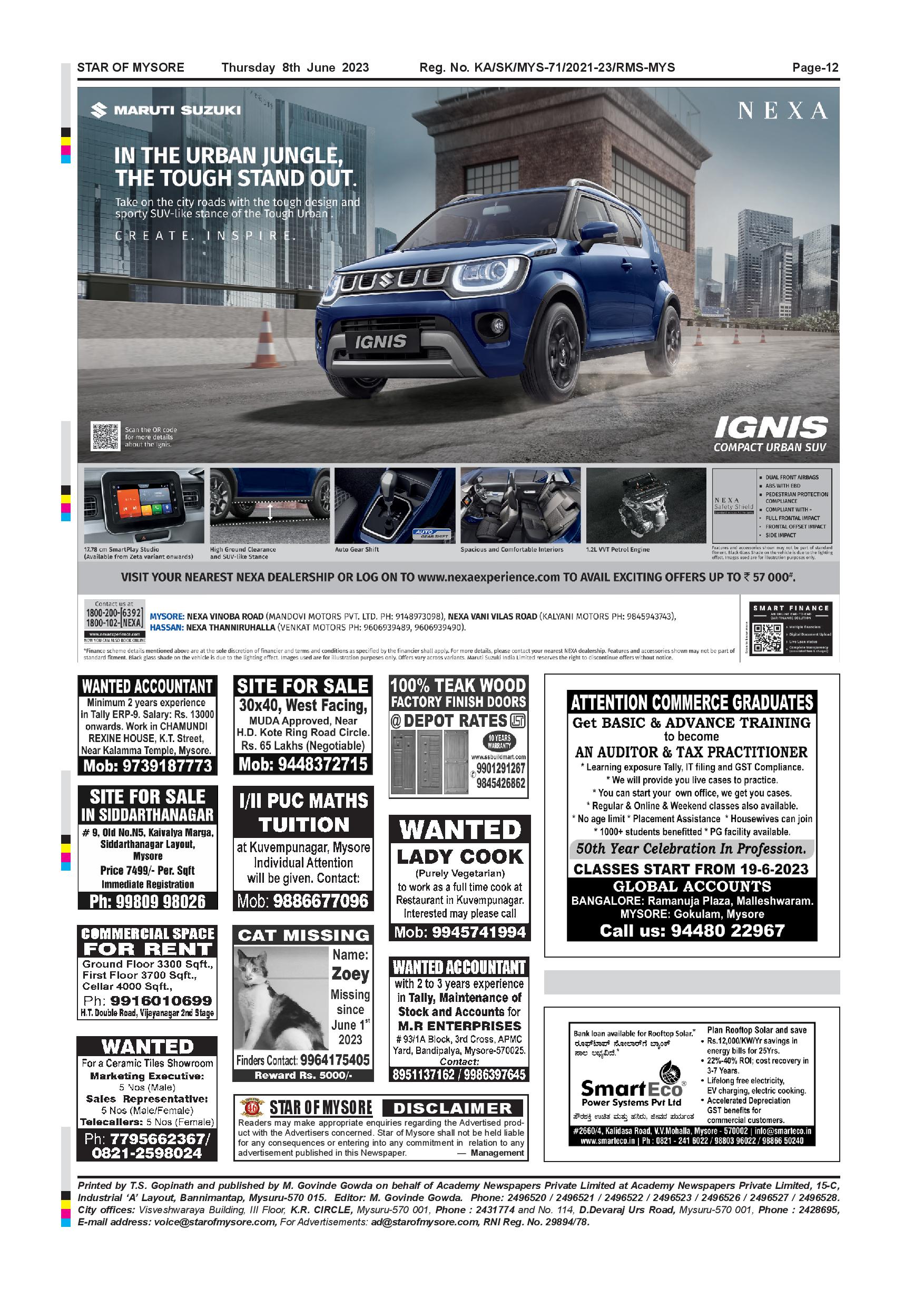Star of Mysore Page: 12 June 08, 2023 << First << 12 >> Last >> Page 1Page 2Page 3Page 4Page 5Page 6Page 7Page 8Page 9Page 10Page 11Page 12 × Star of Mysore << First << 12 >> Last >> Page-001Page-002Page-003Page-004Page-005Page-006Page-007Page-008Page-009Page-010Page-011Page-012 Page-012