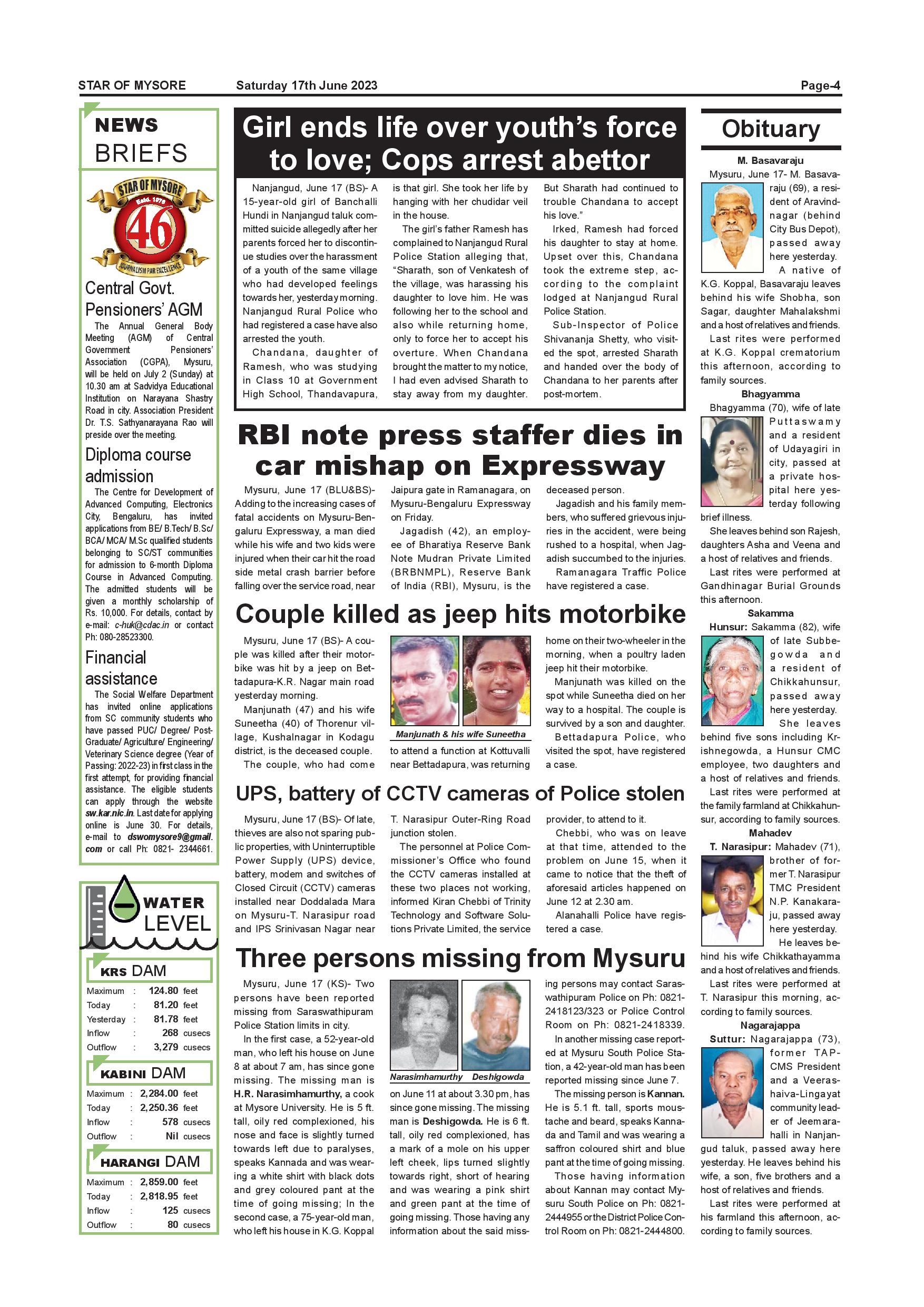 Star of Mysore Page: 4 June 17, 2023 << First << 4 >> Last >> Page 1Page 2Page 3Page 4Page 5Page 6Page 7Page 8Page 9Page 10Page 11Page 12 × Star of Mysore << First << 4 >> Last >> Page-001Page-002Page-003Page-004Page-005Page-006Page-007Page-008Page-009Page-010Page-011Page-012 Page-004