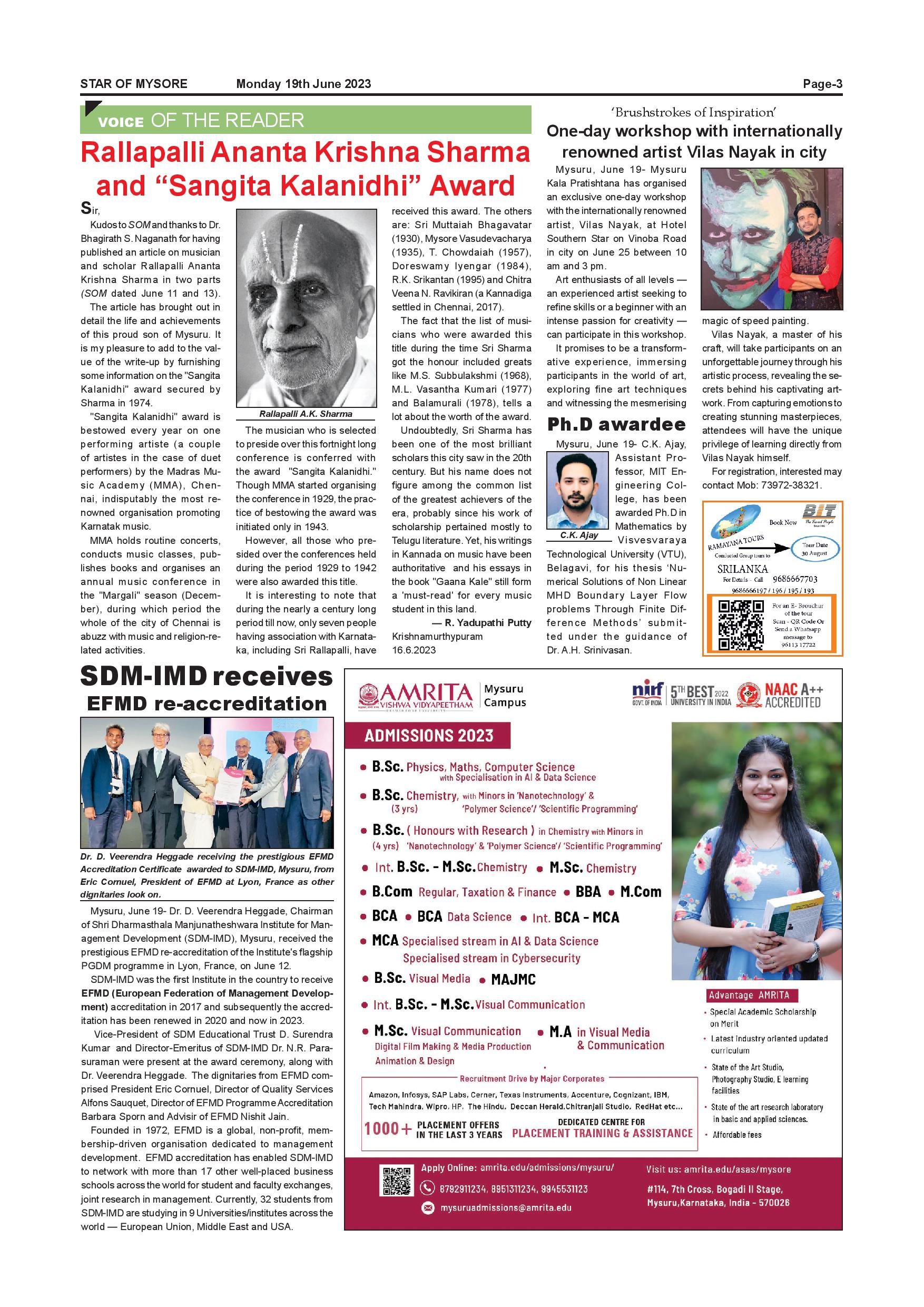 Star of Mysore Page: 3 June 19, 2023 << First << 3 >> Last >> Page 1Page 2Page 3Page 4Page 5Page 6Page 7Page 8Page 9Page 10Page 11Page 12 × Star of Mysore << First << 3 >> Last >> Page-001Page-002Page-003Page-004Page-005Page-006Page-007Page-008Page-009Page-010Page-011Page-012 Page-003