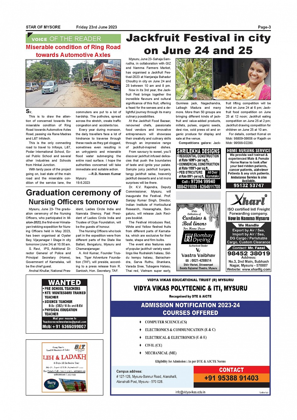Star of Mysore Page: 3 June 23, 2023 << First << 3 >> Last >> Page 1Page 2Page 3Page 4Page 5Page 6Page 7Page 8Page 9Page 10Page 11Page 12 × Star of Mysore << First << 3 >> Last >> Page-001Page-002Page-003Page-004Page-005Page-006Page-007Page-008Page-009Page-010Page-011Page-012 Page-003