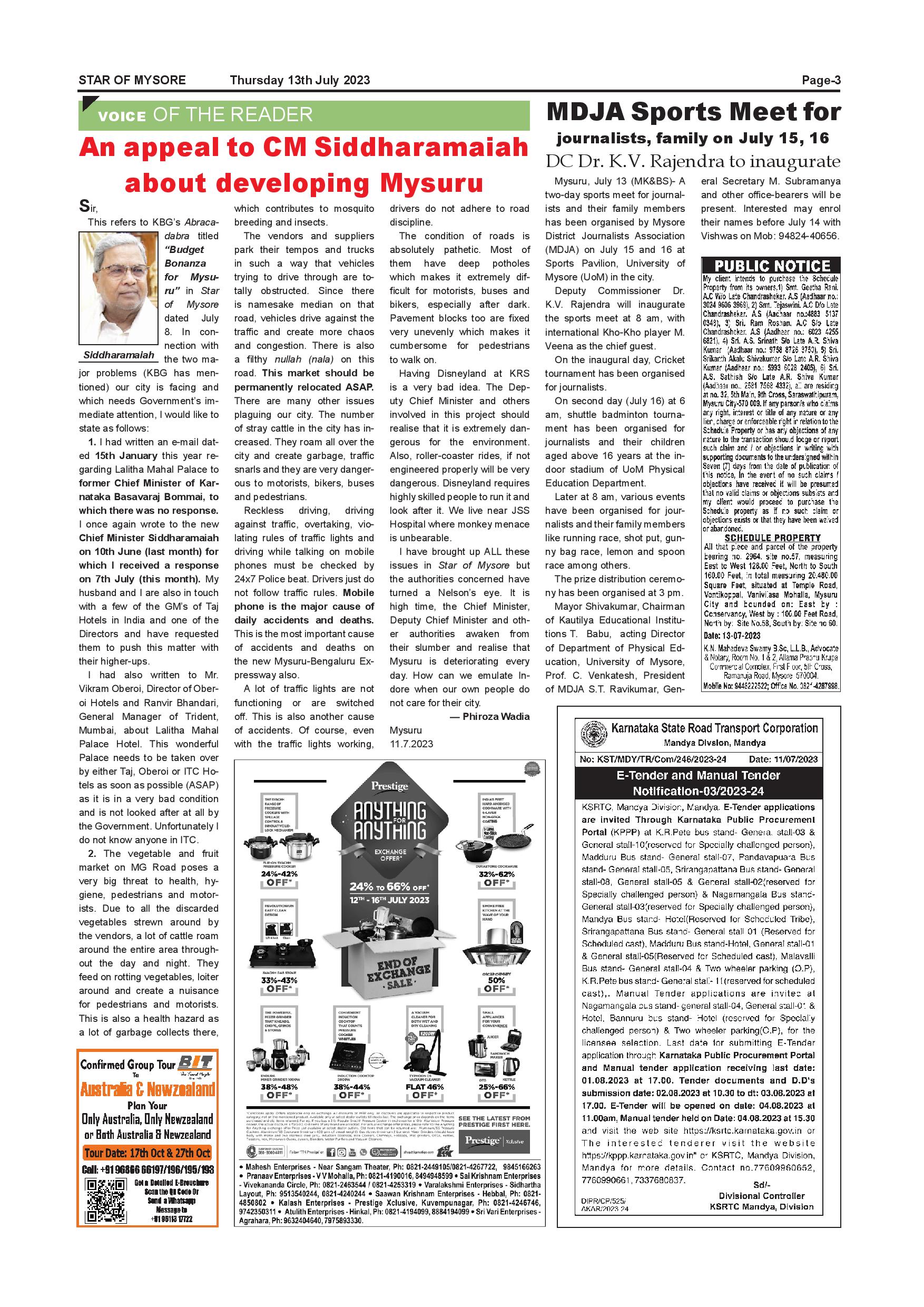 Star of Mysore Page: 3 July 13, 2023 << First << 3 >> Last >> Page 1Page 2Page 3Page 4Page 5Page 6Page 7Page 8Page 9Page 10Page 11Page 12 × Star of Mysore << First << 3 >> Last >> Page-001Page-002Page-003Page-004Page-005Page-006Page-007Page-008Page-009Page-010Page-011Page-012 Page-003
