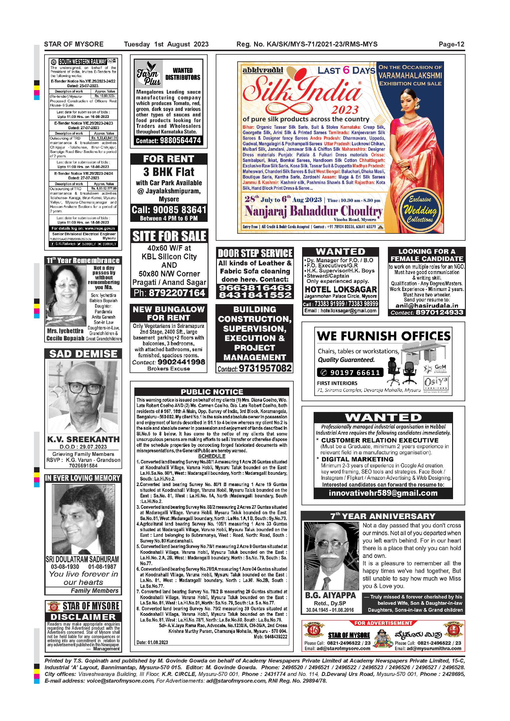 Star of Mysore Page: 12 August 01, 2023 << First << 12 >> Last >> Page 1Page 2Page 3Page 4Page 5Page 6Page 7Page 8Page 9Page 10Page 11Page 12 × Star of Mysore << First << 12 >> Last >> Page-001Page-002Page-003Page-004Page-005Page-006Page-007Page-008Page-009Page-010Page-011Page-012 Page-012