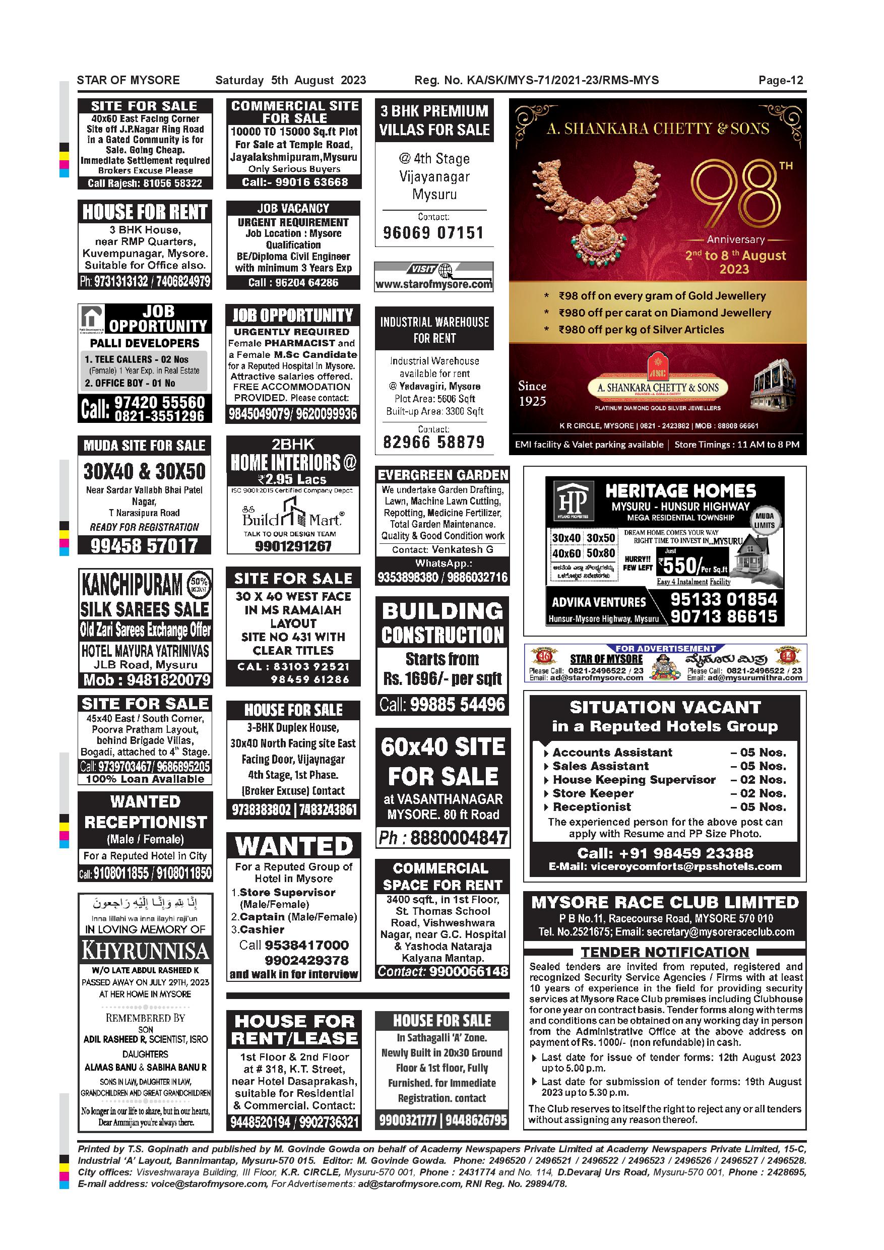 Star of Mysore Page: 12 August 05, 2023 << First << 12 >> Last >> Page 1Page 2Page 3Page 4Page 5Page 6Page 7Page 8Page 9Page 10Page 11Page 12 × Star of Mysore << First << 12 >> Last >> Page-001Page-002Page-003Page-004Page-005Page-006Page-007Page-008Page-009Page-010Page-011Page-012 Page-012