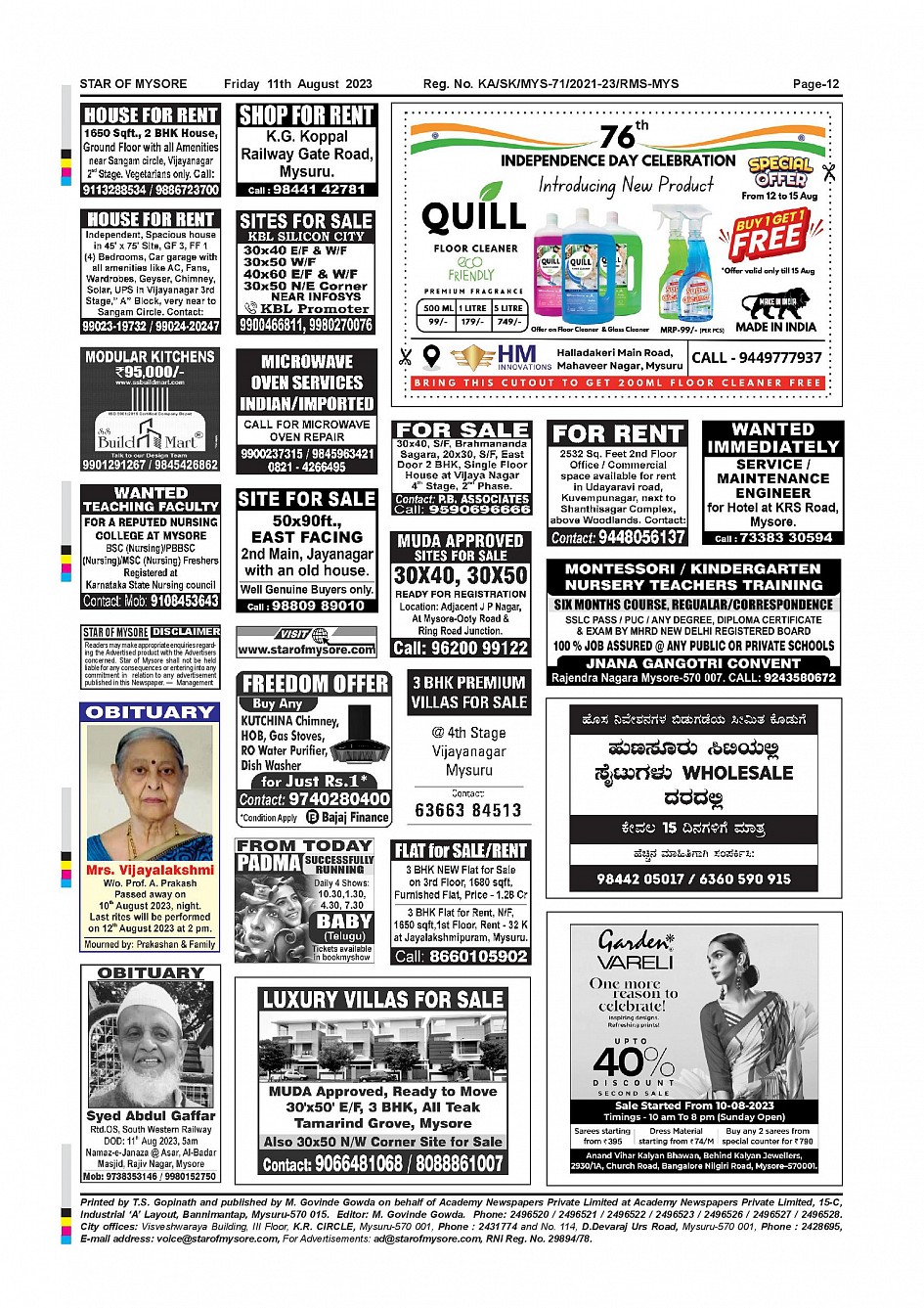 Star of Mysore Page: 12 August 11, 2023 << First << 12 >> Last >> Page 1Page 2Page 3Page 4Page 5Page 6Page 7Page 8Page 9Page 10Page 11Page 12 × Star of Mysore << First << 12 >> Last >> Page-001Page-002Page-003Page-004Page-005Page-006Page-007Page-008Page-009Page-010Page-011Page-012 Page-012