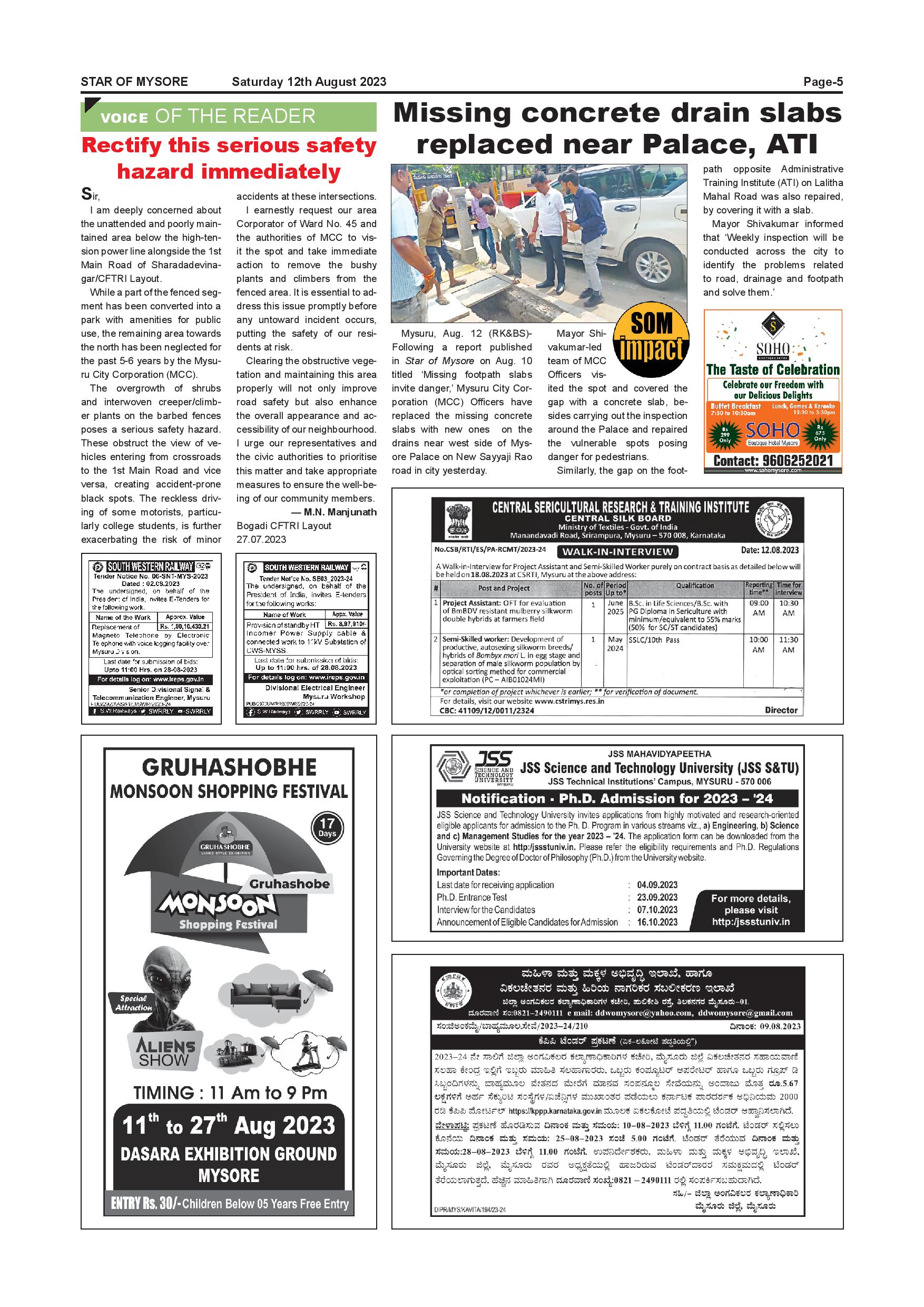 Star of Mysore Page: 5 August 12, 2023 << First << 5 >> Last >> Page 1Page 2Page 3Page 4Page 5Page 6Page 7Page 8Page 9Page 10Page 11Page 12 × Star of Mysore << First << 5 >> Last >> Page-001Page-002Page-003Page-004Page-005Page-006Page-007Page-008Page-009Page-010Page-011Page-012 Page-005