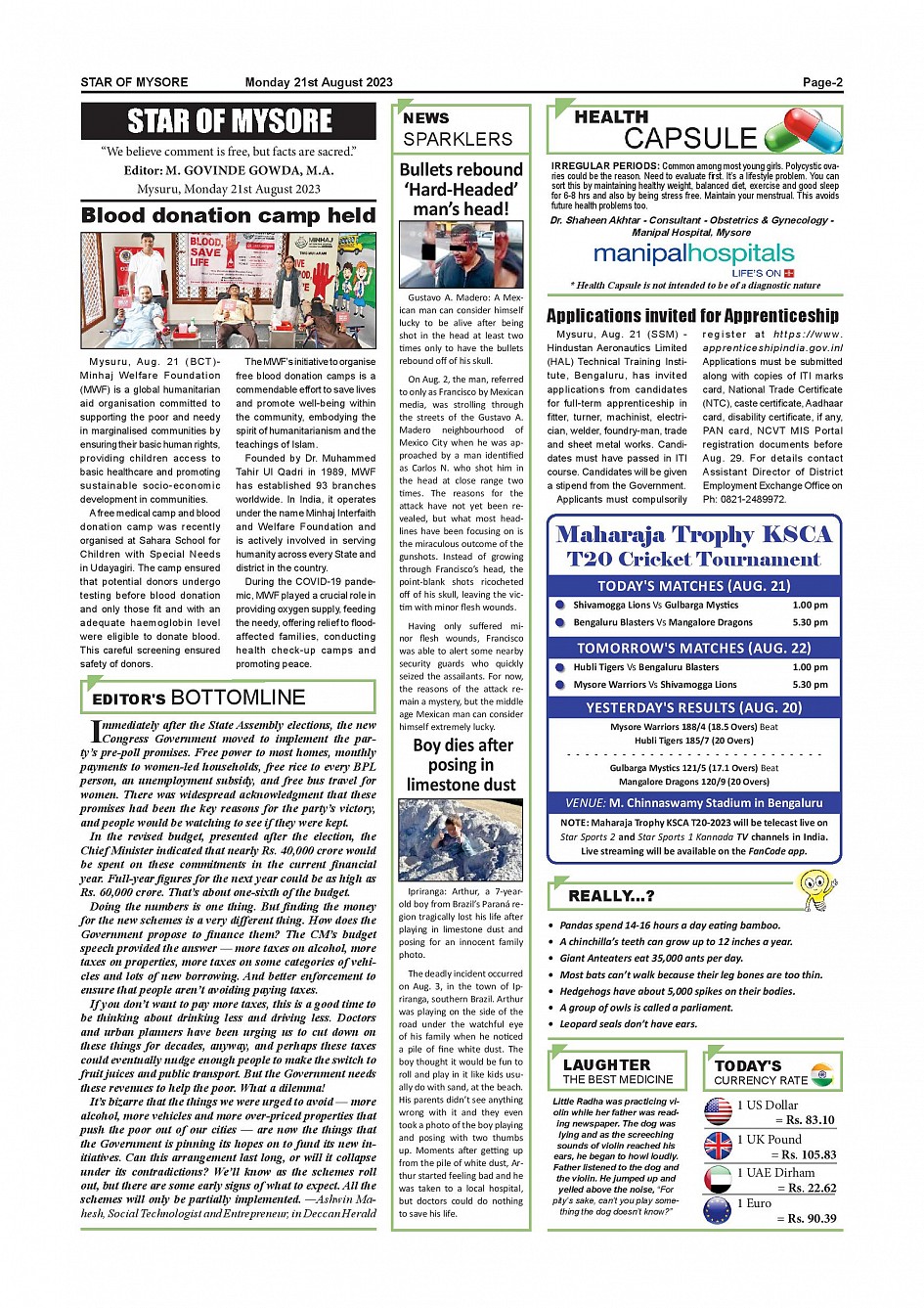 Star of Mysore Page: 2 August 21, 2023 << First << 2 >> Last >> Page 1Page 2Page 3Page 4Page 5Page 6Page 7Page 8Page 9Page 10Page 11Page 12 × Star of Mysore << First << 2 >> Last >> SOM-page-001SOM-page-002SOM-page-003SOM-page-004SOM-page-005SOM-page-006SOM-page-007SOM-page-008SOM-page-009SOM-page-010SOM-page-011SOM-page-012 SOM-page-002