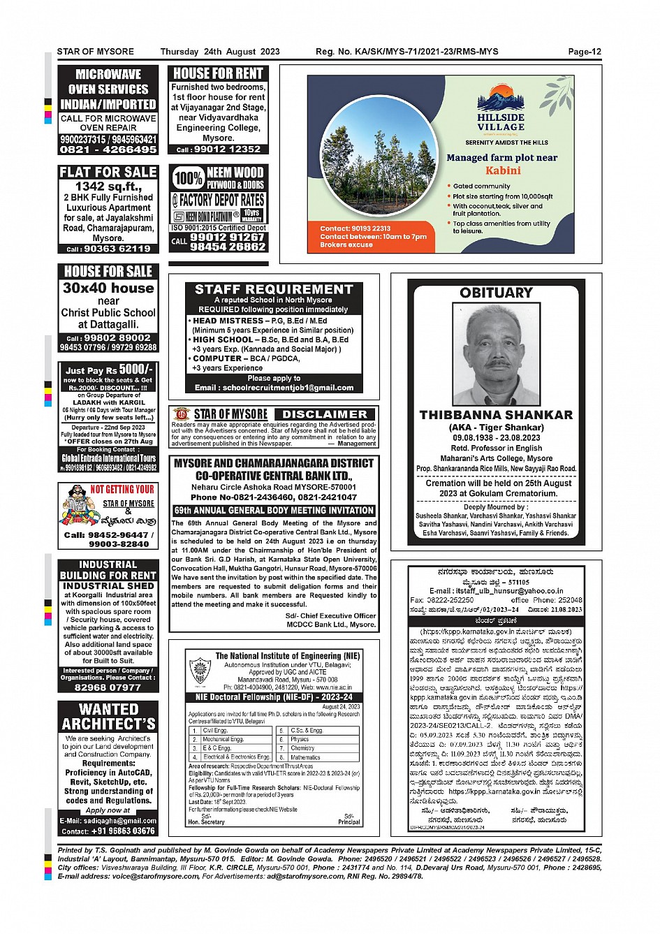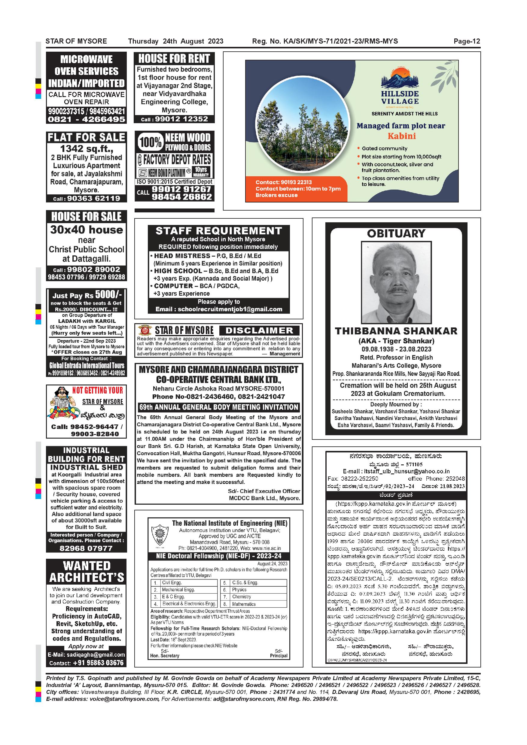 Star of Mysore Page: 12 August 24, 2023 << First << 12 >> Last >> Page 1Page 2Page 3Page 4Page 5Page 6Page 7Page 8Page 9Page 10Page 11Page 12 × Star of Mysore << First << 12 >> Last >> SOM-page-001SOM-page-002SOM-page-003SOM-page-004SOM-page-005SOM-page-006SOM-page-007SOM-page-008SOM-page-009SOM-page-010SOM-page-011SOM-page-012 SOM-page-012