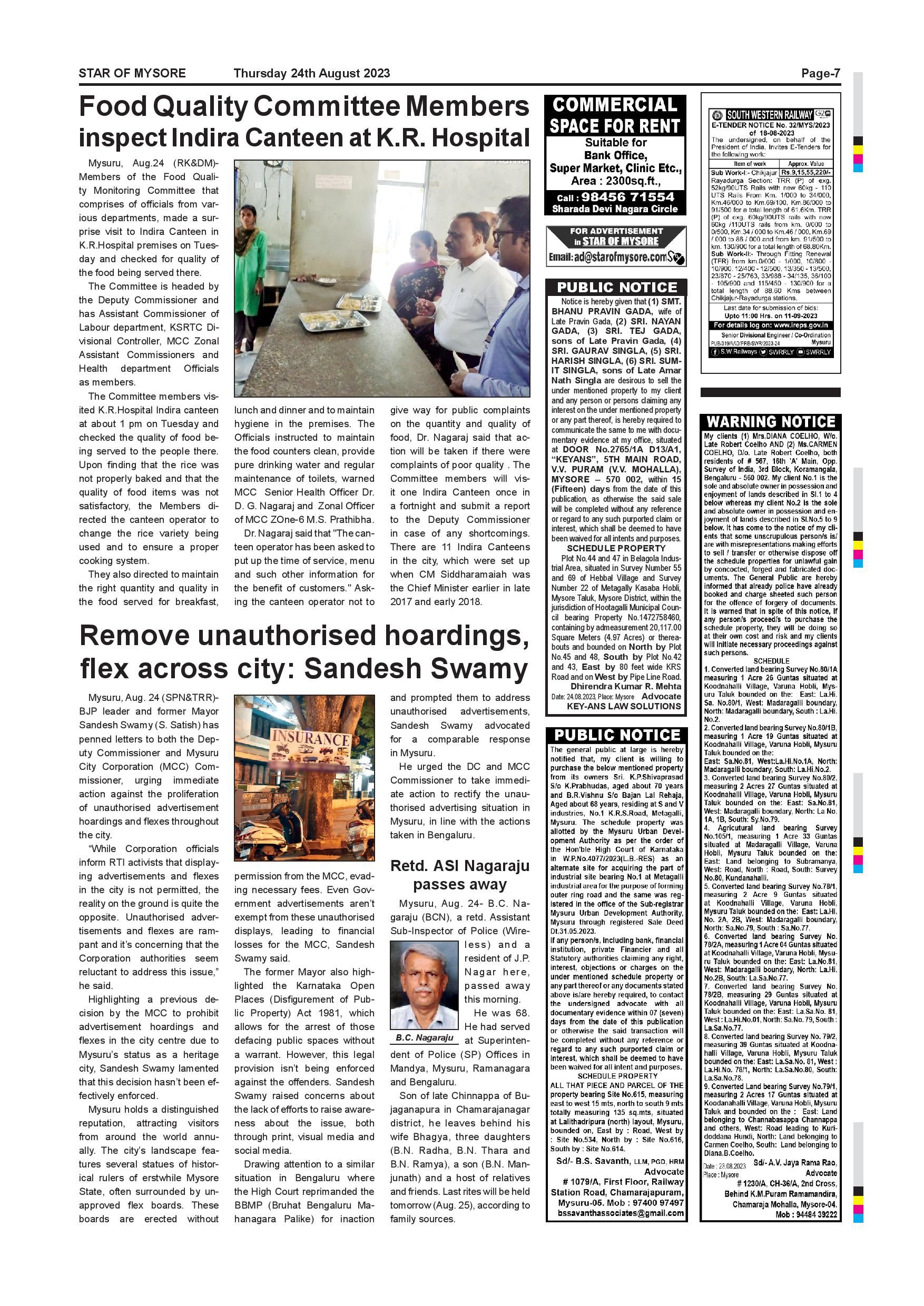 Star of Mysore Page: 7 August 24, 2023 << First << 7 >> Last >> Page 1Page 2Page 3Page 4Page 5Page 6Page 7Page 8Page 9Page 10Page 11Page 12 × Star of Mysore << First << 7 >> Last >> SOM-page-001SOM-page-002SOM-page-003SOM-page-004SOM-page-005SOM-page-006SOM-page-007SOM-page-008SOM-page-009SOM-page-010SOM-page-011SOM-page-012 SOM-page-007