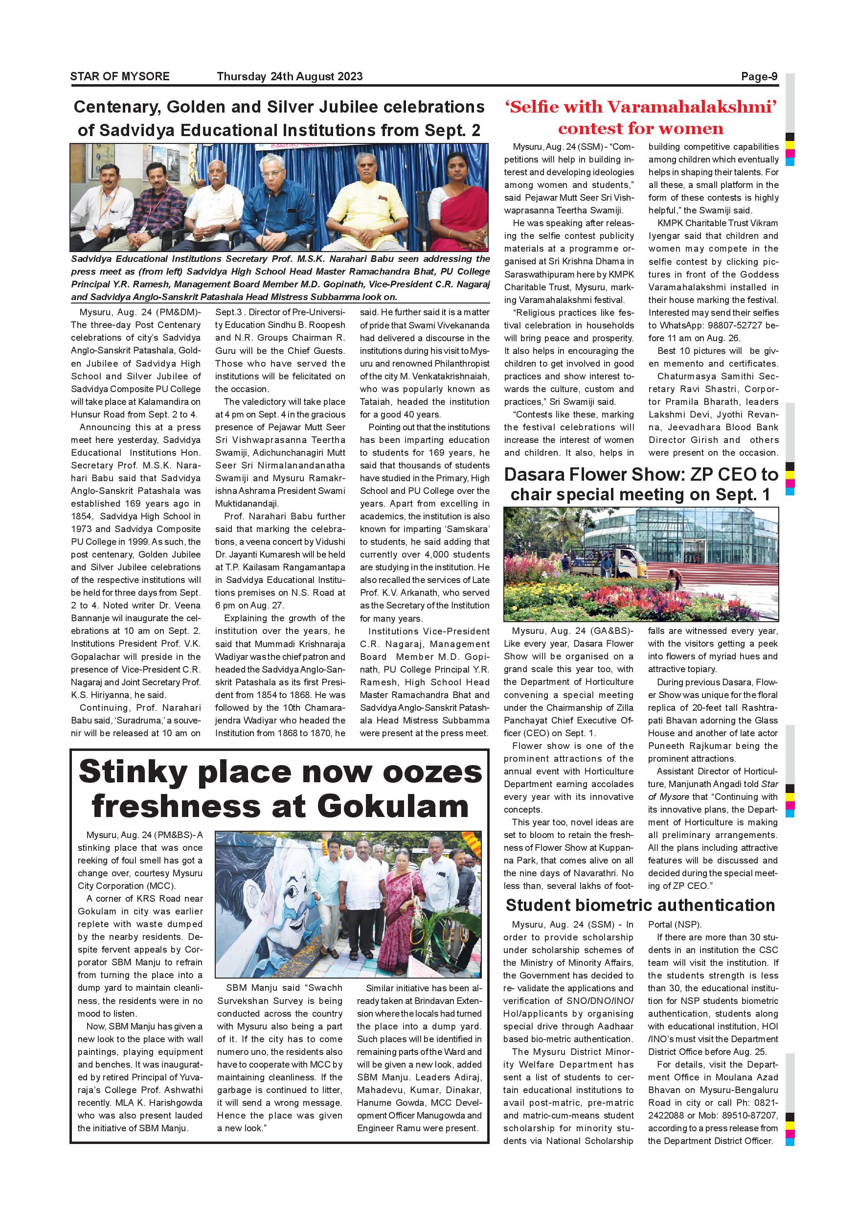Star of Mysore Page: 9 August 24, 2023 << First << 9 >> Last >> Page 1Page 2Page 3Page 4Page 5Page 6Page 7Page 8Page 9Page 10Page 11Page 12 × Star of Mysore << First << 9 >> Last >> SOM-page-001SOM-page-002SOM-page-003SOM-page-004SOM-page-005SOM-page-006SOM-page-007SOM-page-008SOM-page-009SOM-page-010SOM-page-011SOM-page-012 SOM-page-009