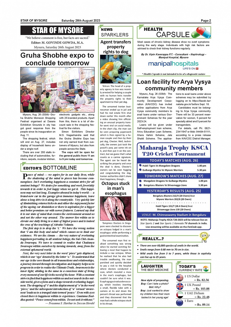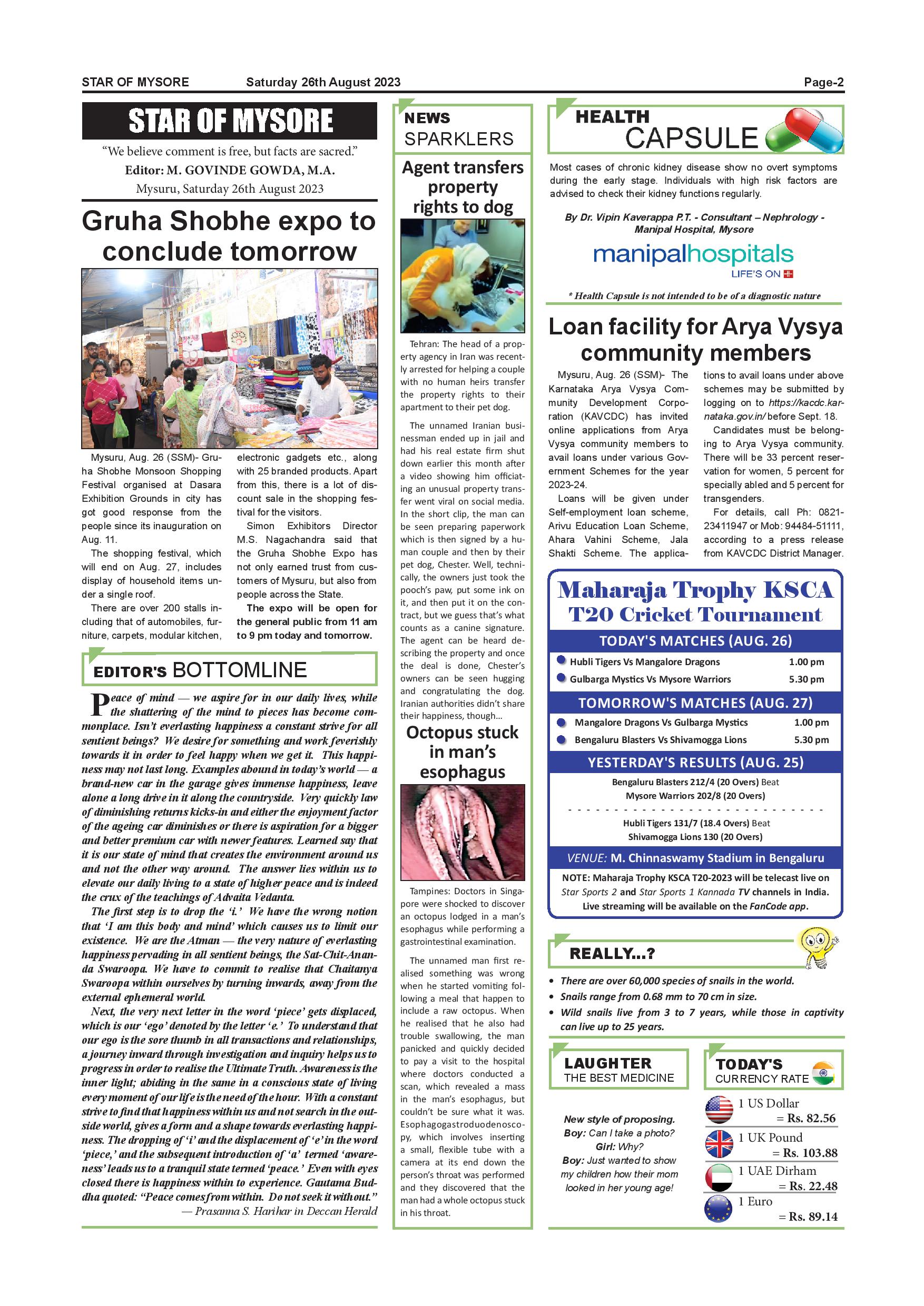 Star of Mysore Page: 2 August 26, 2023 << First << 2 >> Last >> Page 1Page 2Page 3Page 4Page 5Page 6Page 7Page 8Page 9Page 10Page 11Page 12 × Star of Mysore << First << 2 >> Last >> SOM-page-001SOM-page-002SOM-page-003SOM-page-004SOM-page-005SOM-page-006SOM-page-007SOM-page-008SOM-page-009SOM-page-010SOM-page-011SOM-page-012 SOM-page-002