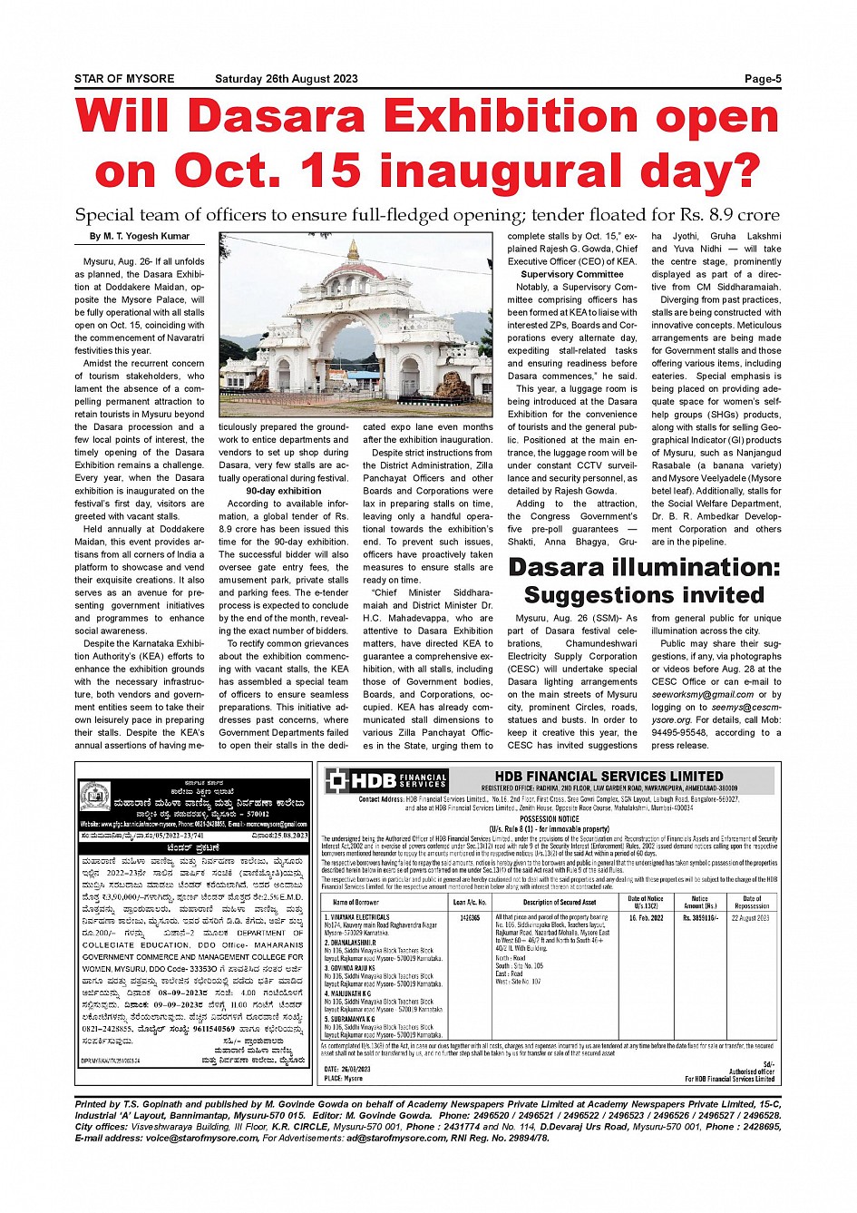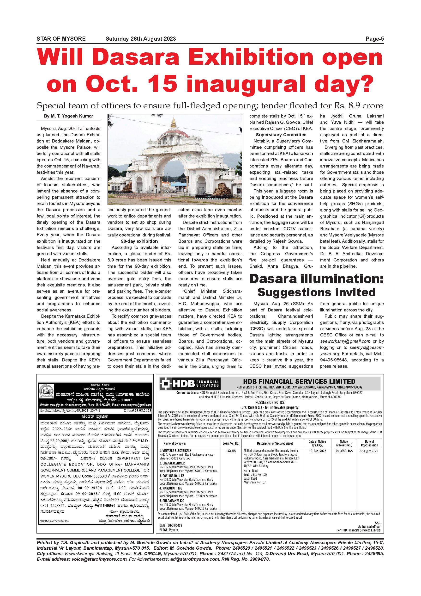 Star of Mysore Page: 5 August 26, 2023 << First << 5 >> Last >> Page 1Page 2Page 3Page 4Page 5Page 6Page 7Page 8Page 9Page 10Page 11Page 12 × Star of Mysore << First << 5 >> Last >> SOM-page-001SOM-page-002SOM-page-003SOM-page-004SOM-page-005SOM-page-006SOM-page-007SOM-page-008SOM-page-009SOM-page-010SOM-page-011SOM-page-012 SOM-page-005