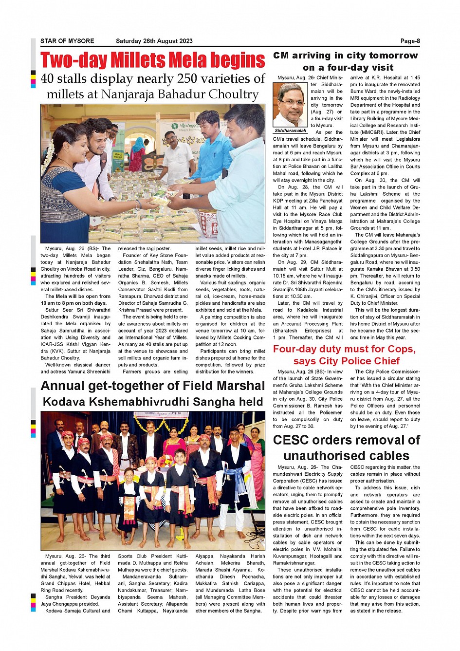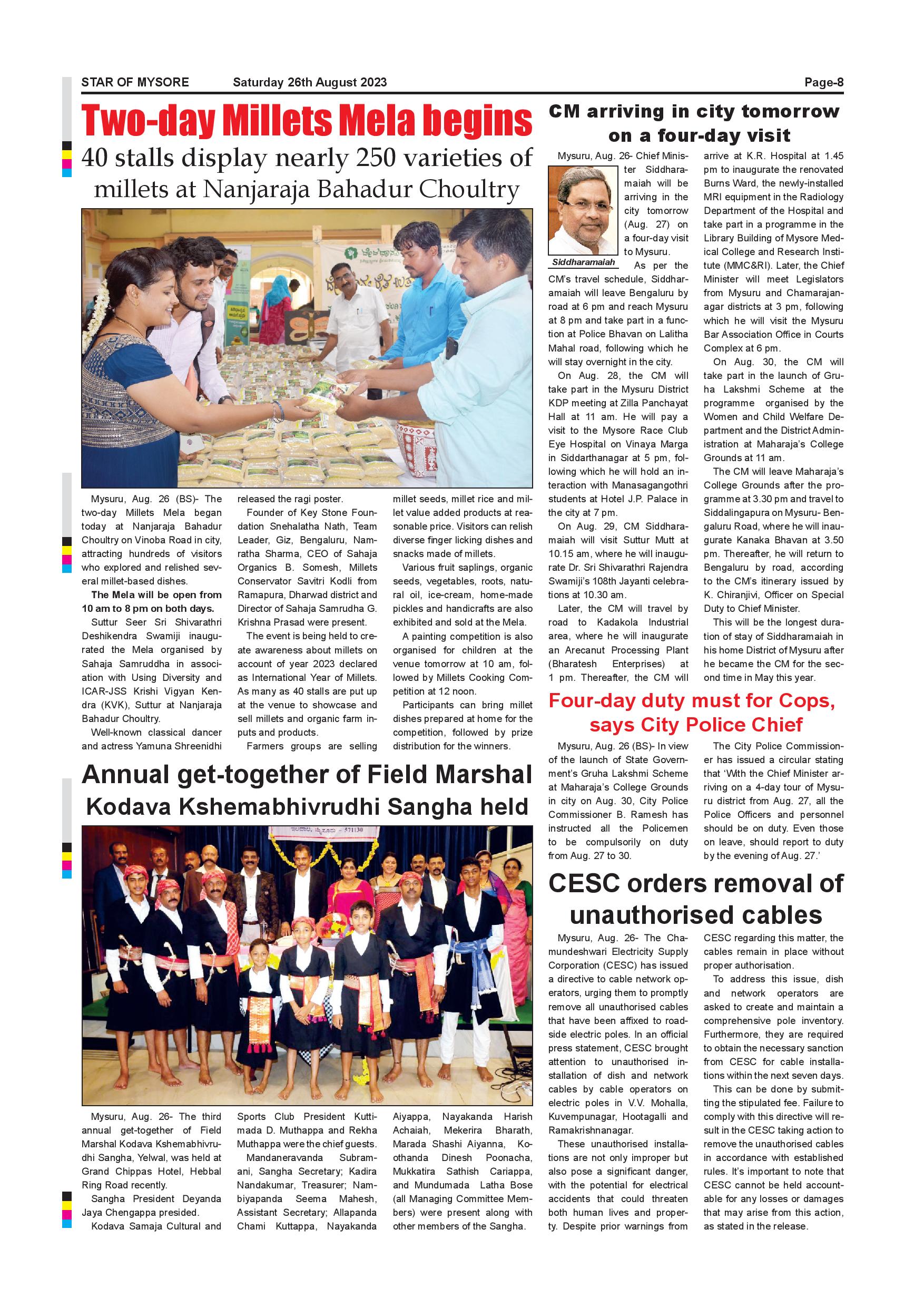 Star of Mysore Page: 8 August 26, 2023 << First << 8 >> Last >> Page 1Page 2Page 3Page 4Page 5Page 6Page 7Page 8Page 9Page 10Page 11Page 12 × Star of Mysore << First << 8 >> Last >> SOM-page-001SOM-page-002SOM-page-003SOM-page-004SOM-page-005SOM-page-006SOM-page-007SOM-page-008SOM-page-009SOM-page-010SOM-page-011SOM-page-012 SOM-page-008