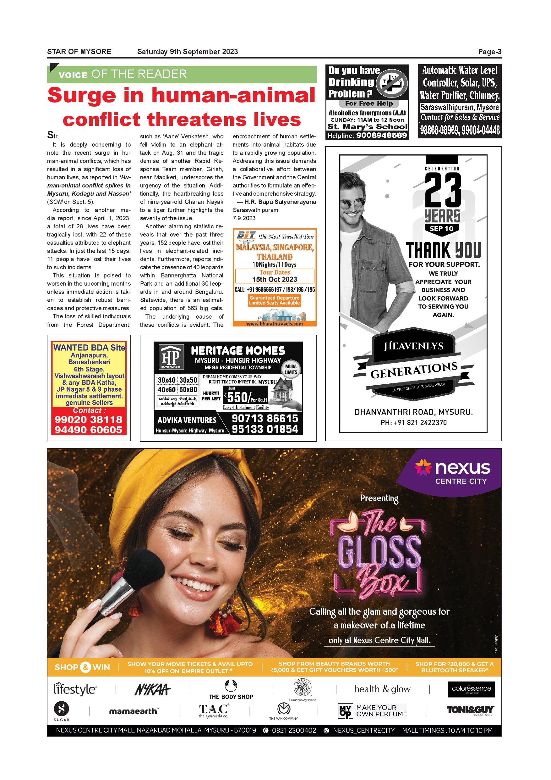 Star of Mysore Page: 3 September 09, 2023 << First << 3 >> Last >> Page 1Page 2Page 3Page 4Page 5Page 6Page 7Page 8Page 9Page 10Page 11Page 12Page 13Page 14Page 15Page 16Page 17Page 18Page 19Page 20 × Star of Mysore << First << 3 >> Last >> Page-001Page-002Page-003Page-004Page-005Page-006Page-007Page-008Page-009Page-010Page-011Page-012Page-013Page-014Page-015Page-016Page-017Page-018Page-019Page-020 Page-003