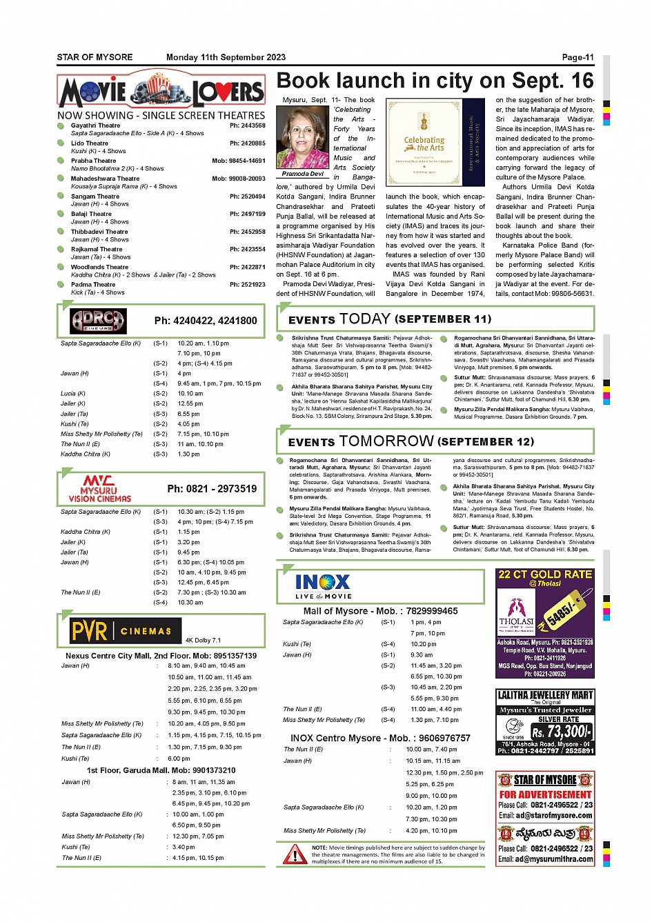 Star of Mysore Page: 11 September 11, 2023 << First << 11 >> Last >> Page 1Page 2Page 3Page 4Page 5Page 6Page 7Page 8Page 9Page 10Page 11Page 12 × Star of Mysore << First << 11 >> Last >> Page-001Page-002Page-003Page-004Page-005Page-006Page-007Page-008Page-009Page-010Page-011Page-012 Page-011