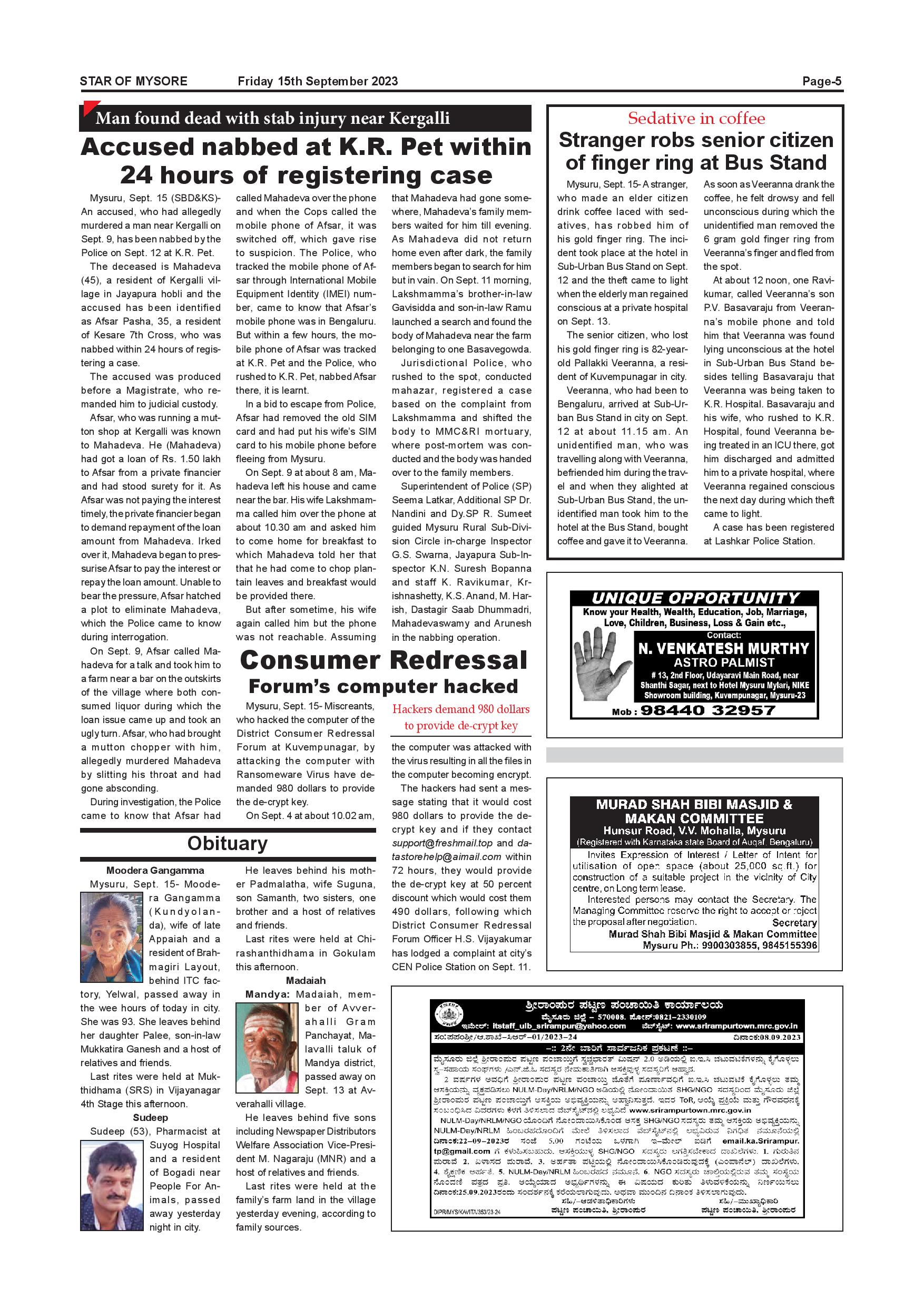 Star of Mysore Page: 5 September 15, 2023 << First << 5 >> Last >> Page 1Page 2Page 3Page 4Page 5Page 6Page 7Page 8Page 9Page 10Page 11Page 12 × Star of Mysore << First << 5 >> Last >> Page-001Page-002Page-003Page-004Page-005Page-006Page-007Page-008Page-009Page-010Page-011Page-012 Page-005