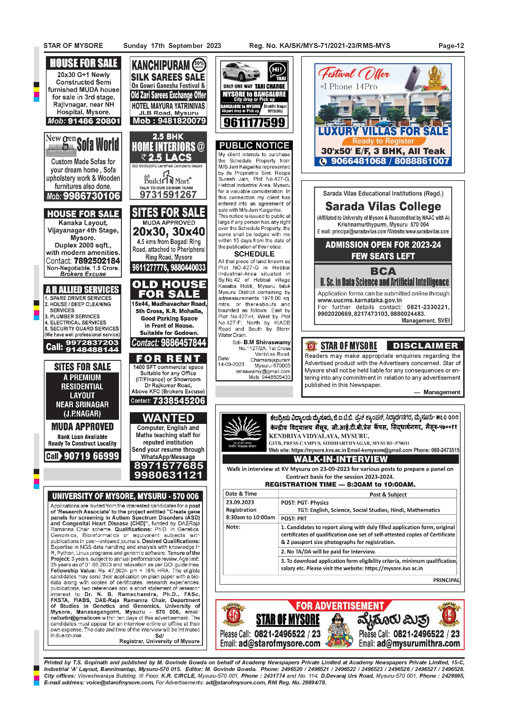 Star of Mysore Page: 12 September 17, 2023 << First << 12 >> Last >> Page 1Page 2Page 3Page 4Page 5Page 6Page 7Page 8Page 9Page 10Page 11Page 12 × Star of Mysore << First << 12 >> Last >> Page-001Page-002Page-003Page-004Page-005Page-006Page-007Page-008Page-009Page-010Page-011Page-012 Page-012