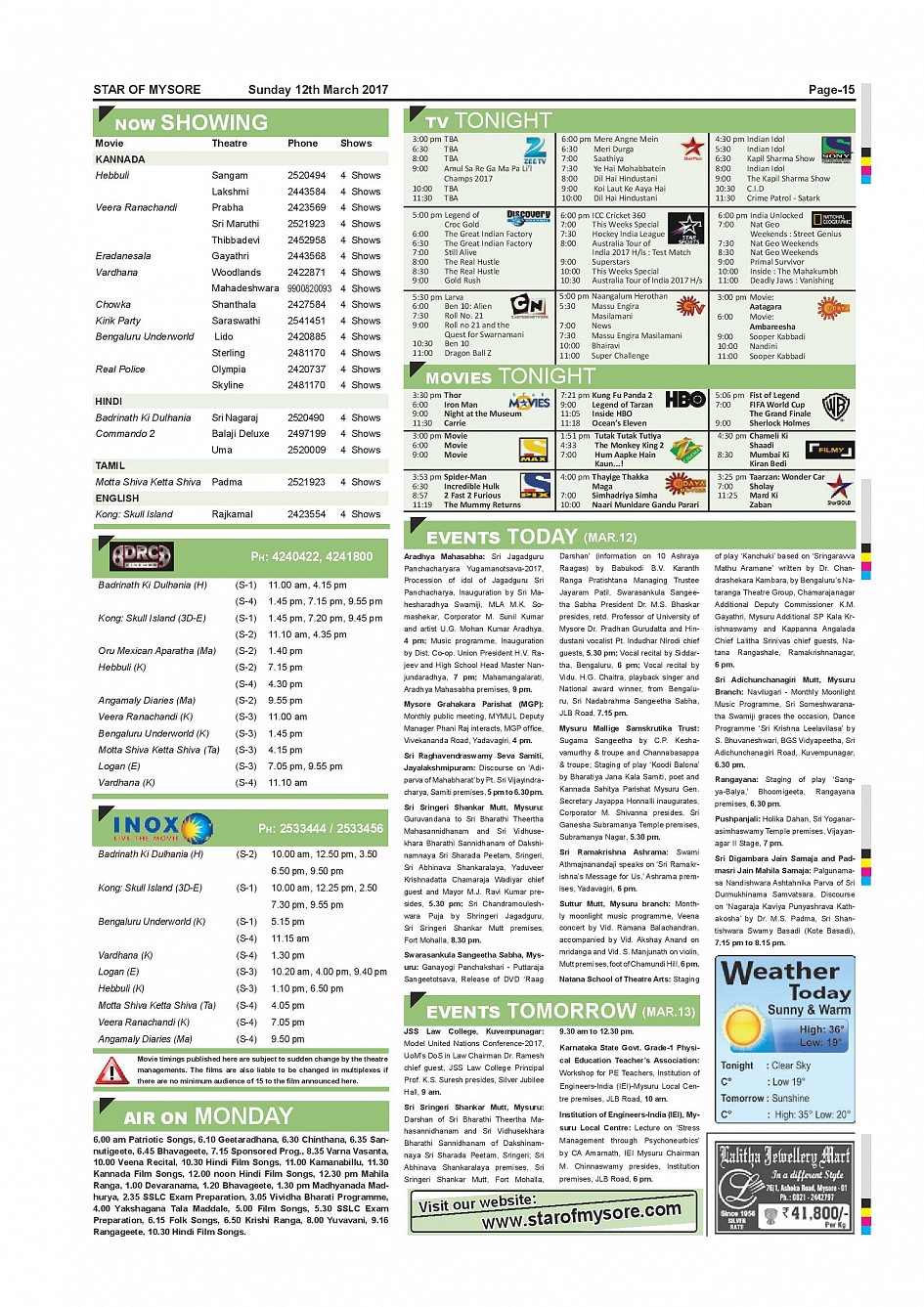 Star of Mysore Page: 15 March 12, 2017 << First << 15 >> Last >> Page 1Page 2Page 3Page 4Page 5Page 6Page 7Page 8Page 9Page 10Page 11Page 12Page 13Page 14Page 15Page 16 × Star of Mysore << First << 15 >> Last >> page-001page-002page-003page-004page-005page-006page-007page-008page-009page-010page-011page-012page-013page-014page-015page-016 page-015