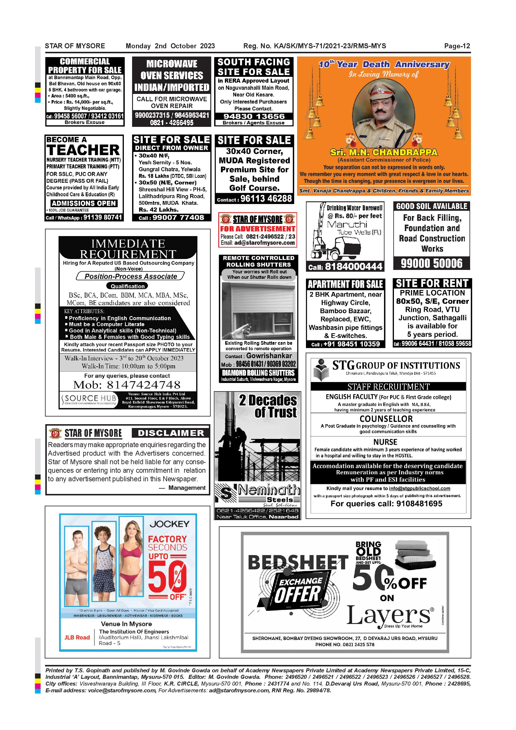 Star of Mysore Page: 11 October 02, 2023 << First << 11 >> Last >> Page 1Page 2Page 3Page 4Page 5Page 6Page 7Page 8Page 9Page 10Page 11 × Star of Mysore << First << 11 >> Last >> Page-001Page-002Page-003Page-004Page-005Page-006-007Page-008Page-009Page-010Page-011Page-012 Page-012