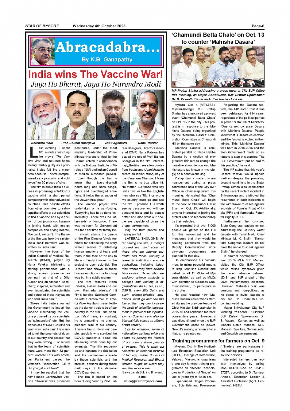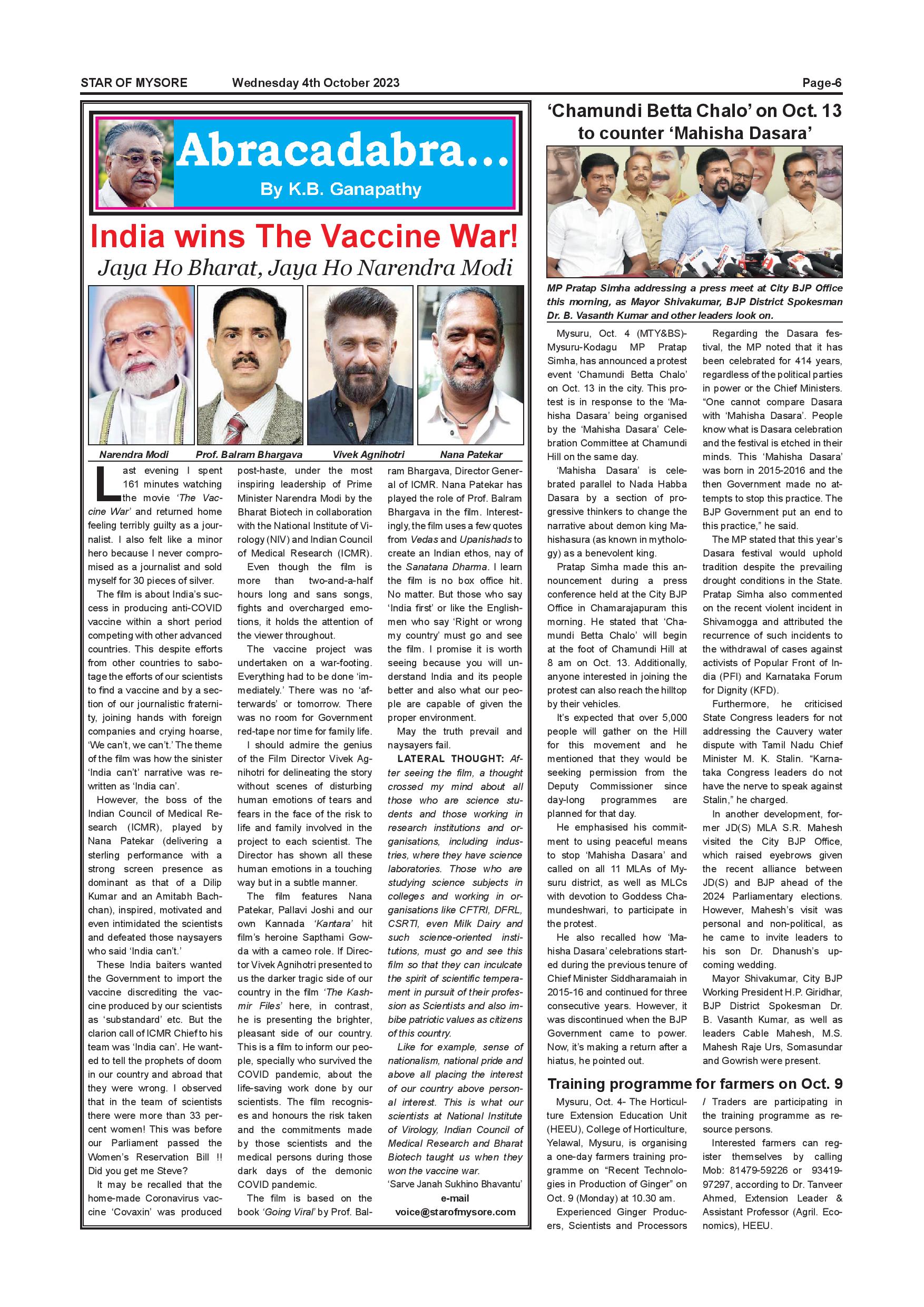 Star of Mysore Page: 6 October 04, 2023 << First << 6 >> Last >> Page 1Page 2Page 3Page 4Page 5Page 6Page 7Page 8Page 9Page 10Page 11Page 12 × Star of Mysore << First << 6 >> Last >> Page-001Page-002Page-003Page-004Page-005Page-006Page-007Page-008Page-009Page-010Page-011Page-012 Page-006