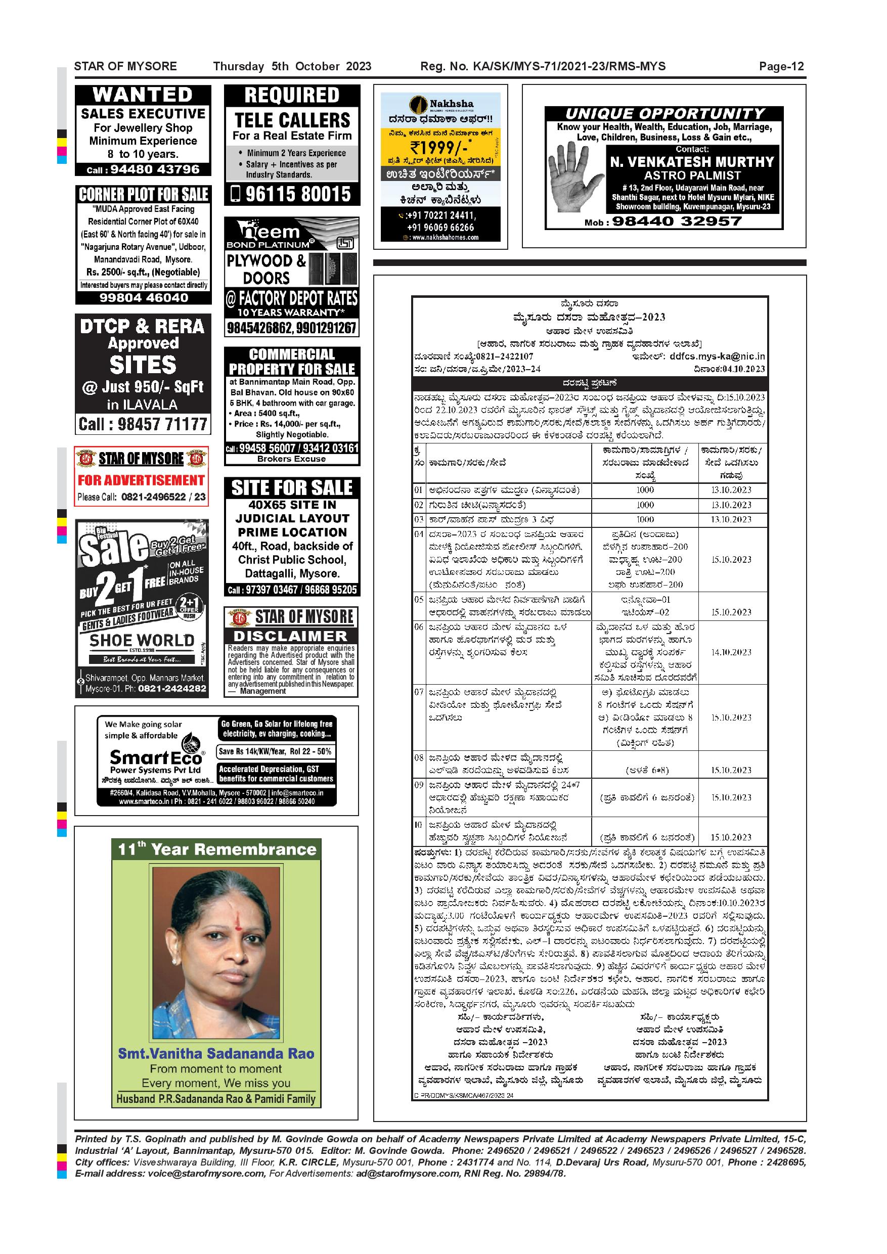 Star of Mysore Page: 12 October 05, 2023 << First << 12 >> Last >> Page 1Page 2Page 3Page 4Page 5Page 6Page 7Page 8Page 9Page 10Page 11Page 12 × Star of Mysore << First << 12 >> Last >> Page-001Page-002Page-003Page-004Page-005Page-006Page-007Page-008Page-009Page-010Page-011Page-012 Page-012