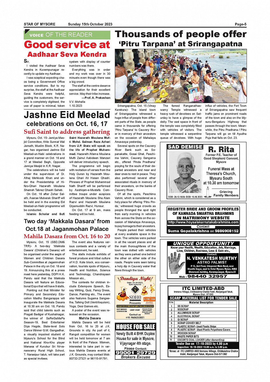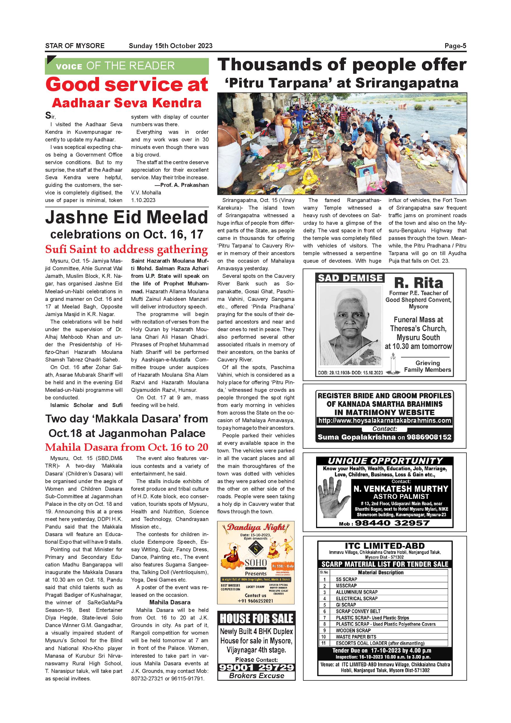 Star of Mysore Page: 5 October 15, 2023 << First << 5 >> Last >> Page 1Page 2Page 3Page 4Page 5Page 6Page 7Page 8Page 9Page 10Page 11Page 12 × Star of Mysore << First << 5 >> Last >> Page-001Page-002Page-003Page-004Page-005Page-006Page-007Page-008Page-009Page-010Page-011Page-012 Page-005