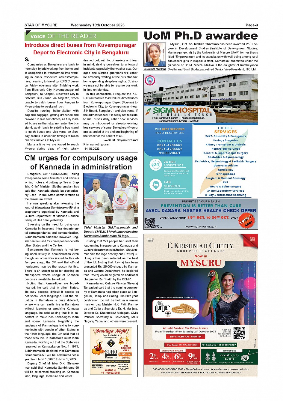 Star of Mysore Page: 3 October 18, 2023 << First << 3 >> Last >> Page 1Page 2Page 3Page 4Page 5Page 6Page 7Page 8Page 9Page 10Page 11Page 12 × Star of Mysore << First << 3 >> Last >> Page-001Page-002Page-003Page-004Page-005Page-006Page-007Page-008Page-009Page-010Page-011Page-012 Page-003