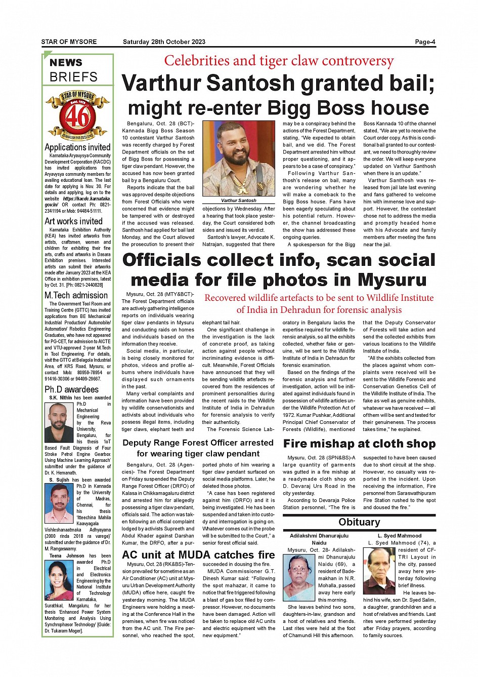 Star of Mysore Page: 4 October 28, 2023 << First << 4 >> Last >> Page 1Page 2Page 3Page 4Page 5Page 6Page 7Page 8Page 9Page 10Page 11Page 12 × Star of Mysore << First << 4 >> Last >> Page-001Page-002Page-003Page-004Page-005Page-006Page-007Page-008Page-009Page-010Page-011Page-012 Page-004