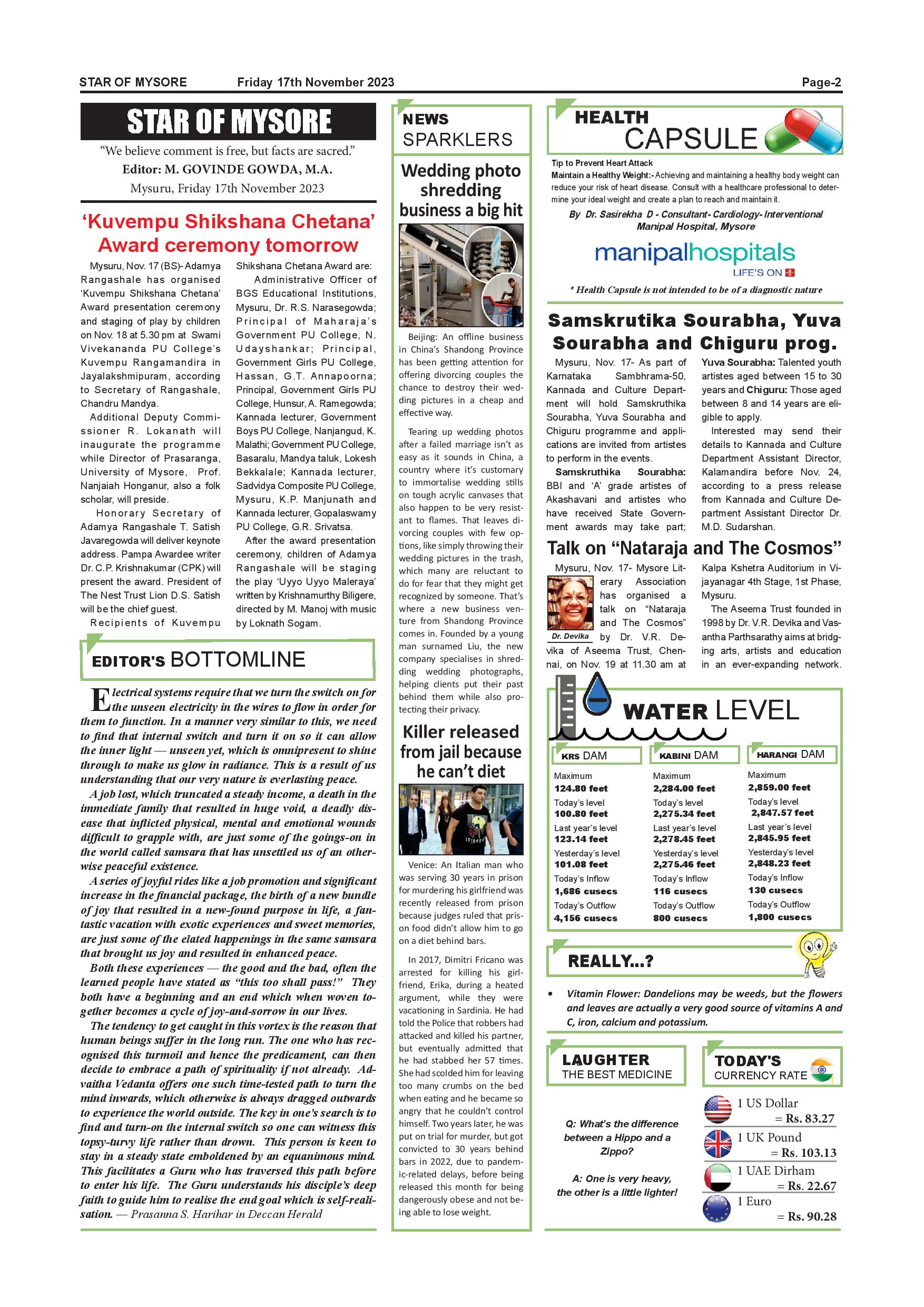 Star of Mysore Page: 2 November 17, 2023 << First << 2 >> Last >> Page 1Page 2Page 3Page 4Page 5Page 6Page 7Page 8Page 9Page 10Page 11Page 12 × Star of Mysore << First << 2 >> Last >> Page-001Page-002Page-003Page-004Page-005Page-006Page-007Page-008Page-009Page-010Page-011Page-012 Page-002