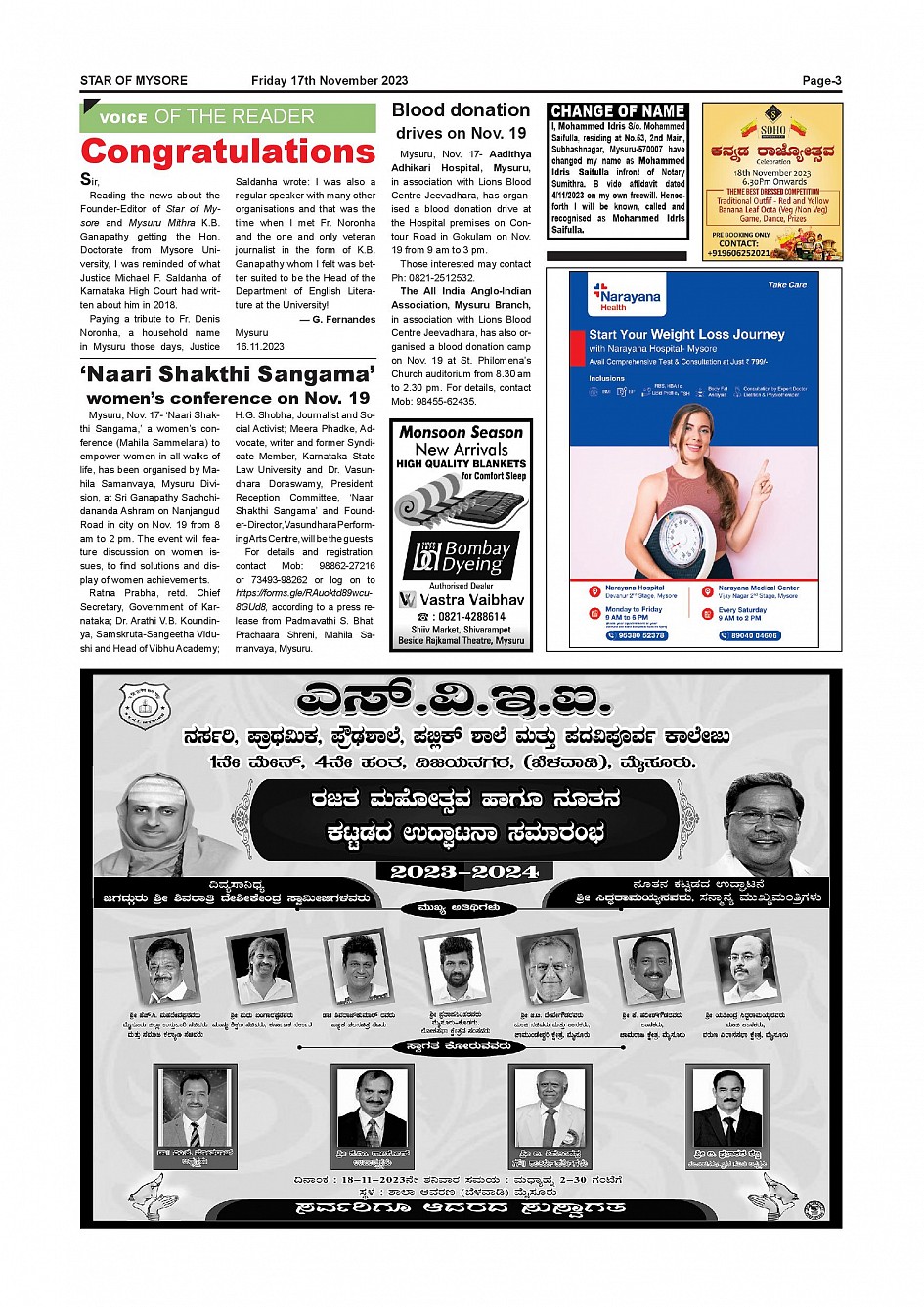 Star of Mysore Page: 3 November 17, 2023 << First << 3 >> Last >> Page 1Page 2Page 3Page 4Page 5Page 6Page 7Page 8Page 9Page 10Page 11Page 12 × Star of Mysore << First << 3 >> Last >> Page-001Page-002Page-003Page-004Page-005Page-006Page-007Page-008Page-009Page-010Page-011Page-012 Page-003