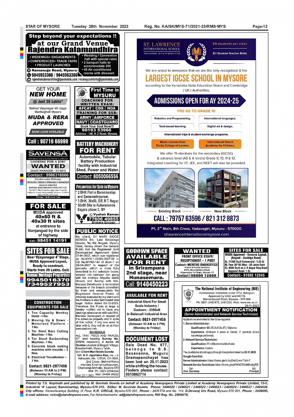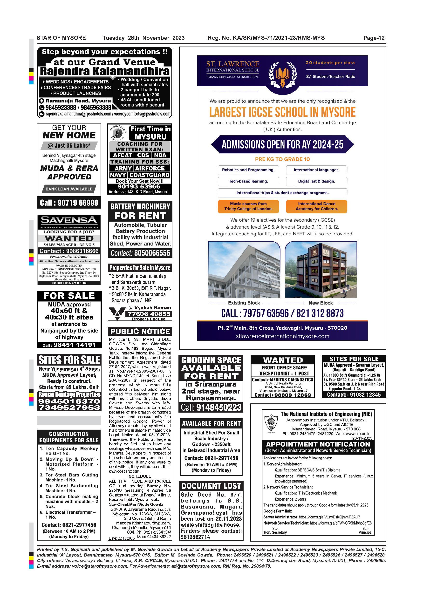 Star of Mysore Page: 12 November 28, 2023 << First << 12 >> Last >> Page 1Page 2Page 3Page 4Page 5Page 6Page 7Page 8Page 9Page 10Page 11Page 12 × Star of Mysore << First << 12 >> Last >> Page-001Page-002Page-003Page-004Page-005Page-006Page-007Page-008Page-009Page-010Page-011Page-012 Page-012