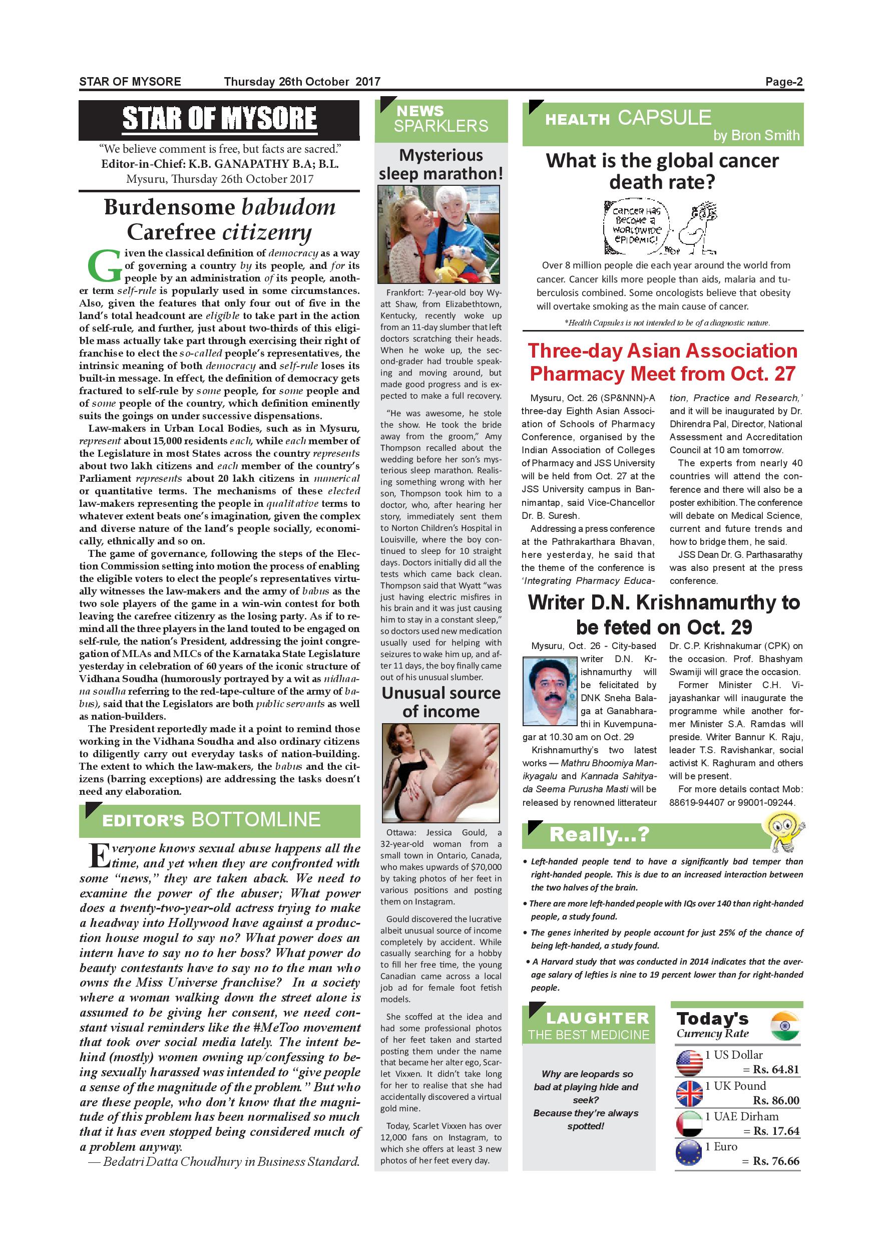 Star of Mysore Page: 2 October 26, 2017 << First << 2 >> Last >> Page 1Page 2Page 3Page 4Page 5Page 6Page 7Page 8Page 9Page 10Page 11Page 12Page 13Page 14Page 15Page 16 × Star of Mysore << First << 2 >> Last >> page-001page-002page-003page-004page-005page-006page-007page-008page-009page-010page-011page-012page-013page-014page-015page-016 page-002