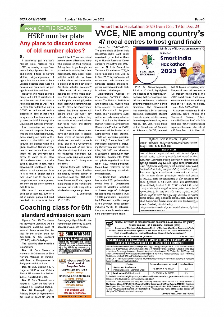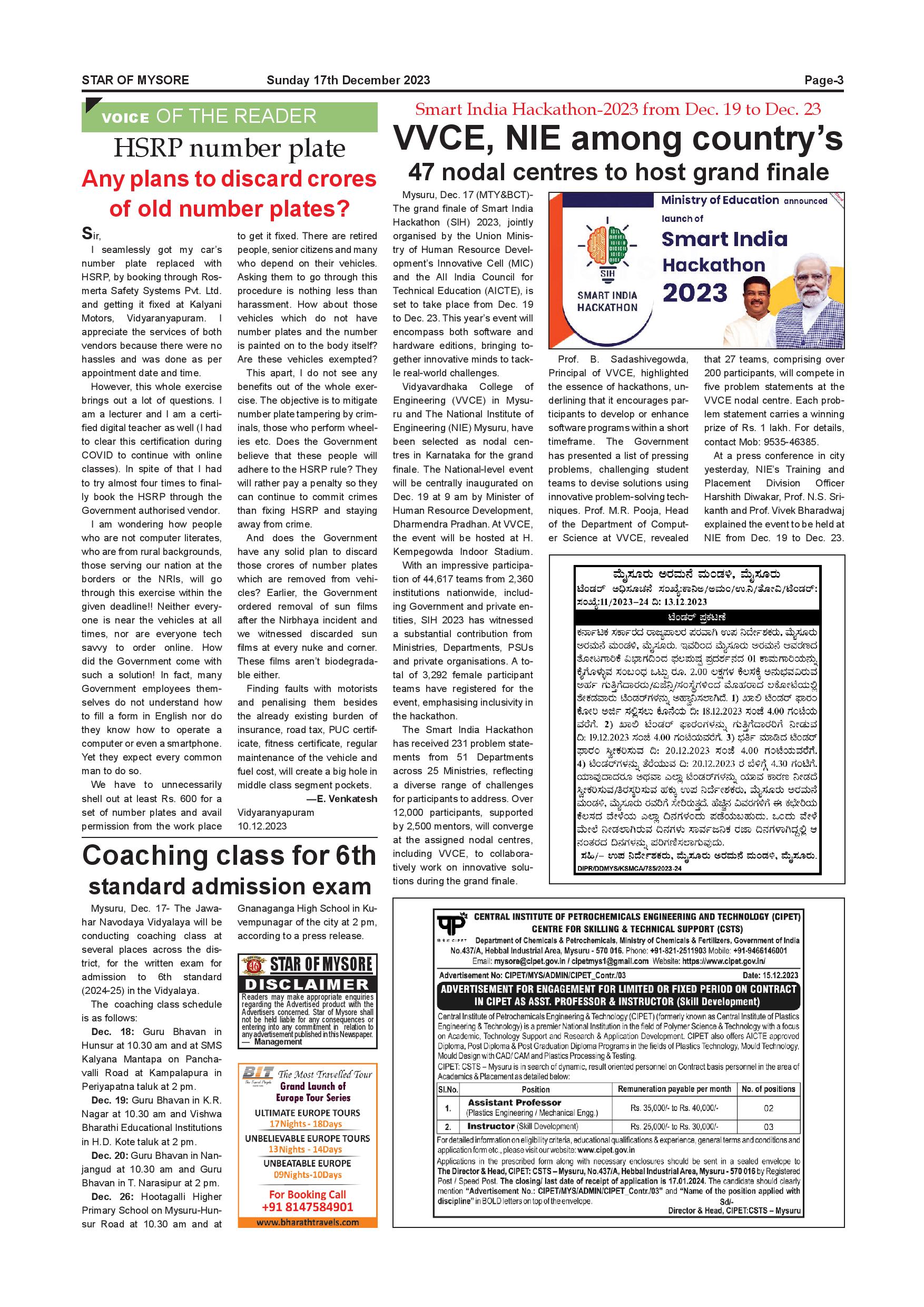 Star of Mysore Page: 3 December 17, 2023 << First << 3 >> Last >> Page 1Page 2Page 3Page 4Page 5Page 6Page 7Page 8Page 9Page 10Page 11Page 12 × Star of Mysore << First << 3 >> Last >> Page-001Page-002Page-003Page-004Page-005Page-006Page-007Page-008Page-009Page-010Page-011Page-012 Page-003