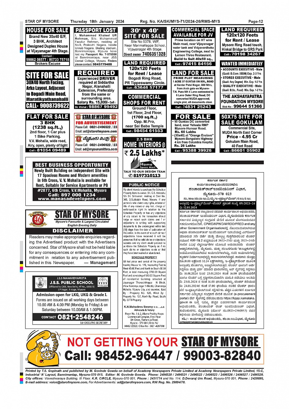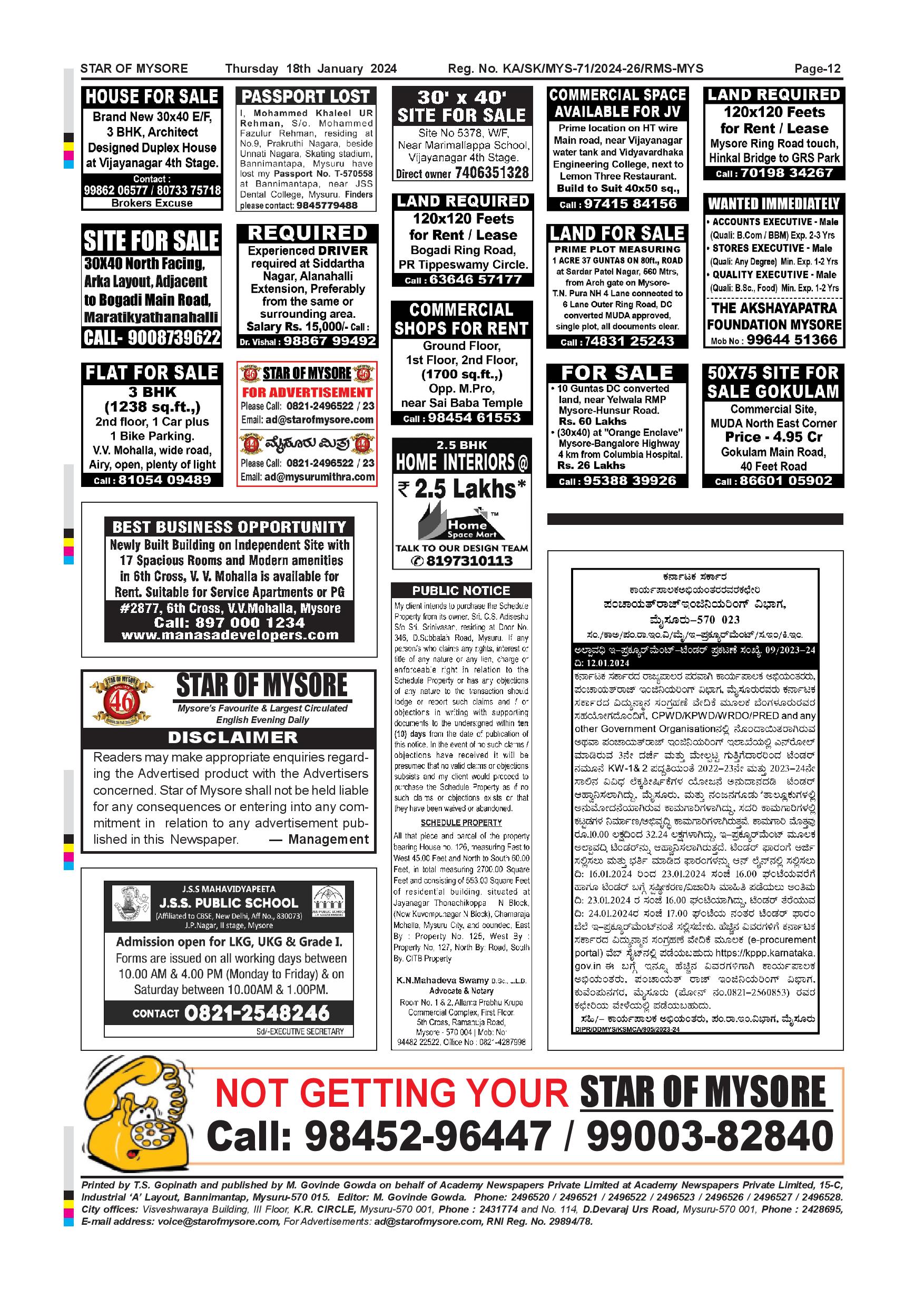 Star of Mysore Page: 12 January 18, 2024 << First << 12 >> Last >> Page 1Page 2Page 3Page 4Page 5Page 6Page 7Page 8Page 9Page 10Page 11Page 12 × Star of Mysore << First << 12 >> Last >> Page-001Page-002Page-003Page-004Page-005Page-006Page-007Page-008Page-009Page-010Page-011Page-012 Page-012
