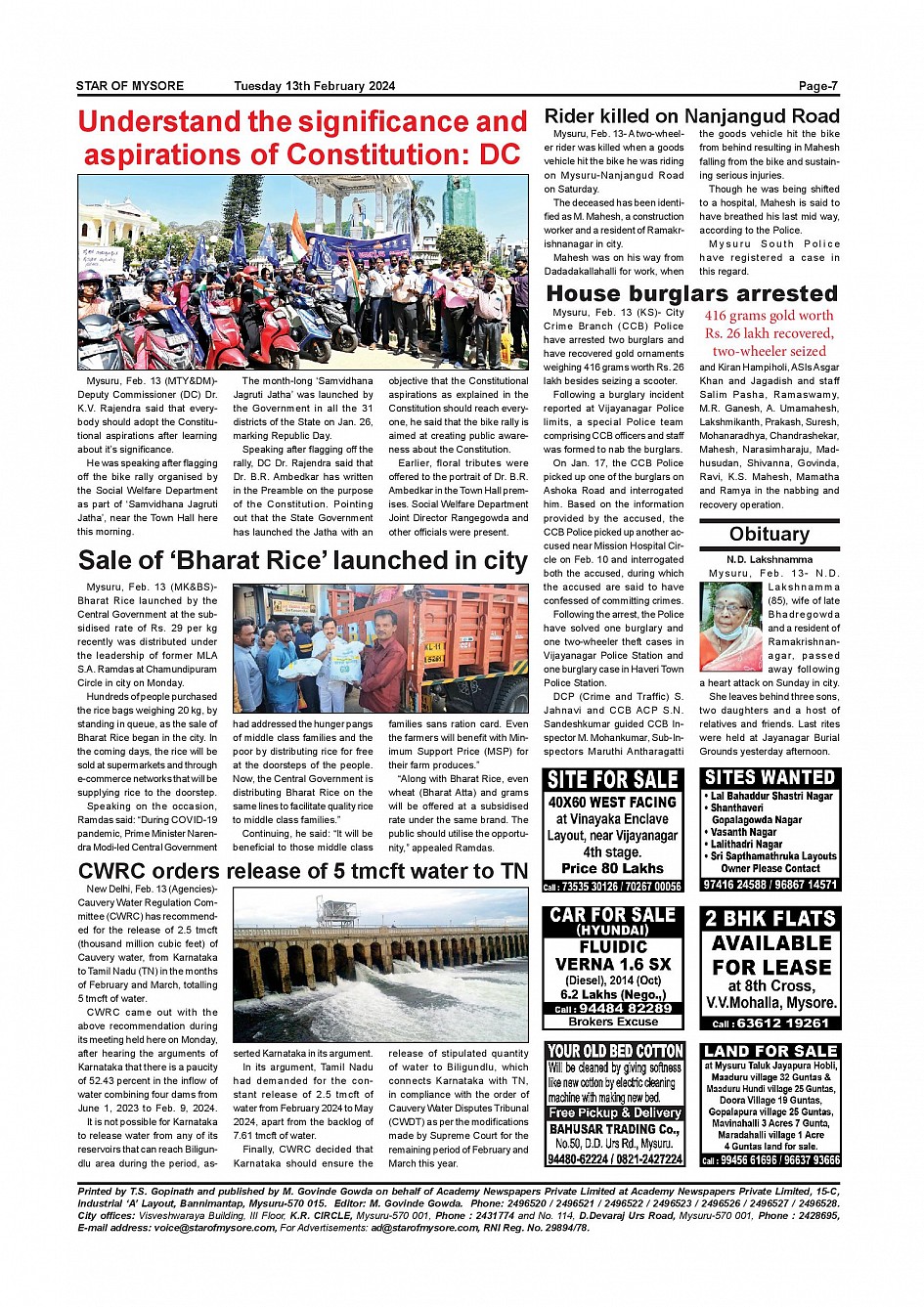 Star of Mysore Page: 7 February 13, 2024 << First << 7 >> Last >> Page 1Page 2Page 3Page 4Page 5Page 6Page 7Page 8Page 9Page 10Page 11Page 12 × Star of Mysore << First << 7 >> Last >> SOM-page-001SOM-page-002SOM-page-003SOM-page-004SOM-page-005SOM-page-006SOM-page-007SOM-page-008SOM-page-009SOM-page-010SOM-page-011SOM-page-012 SOM-page-007