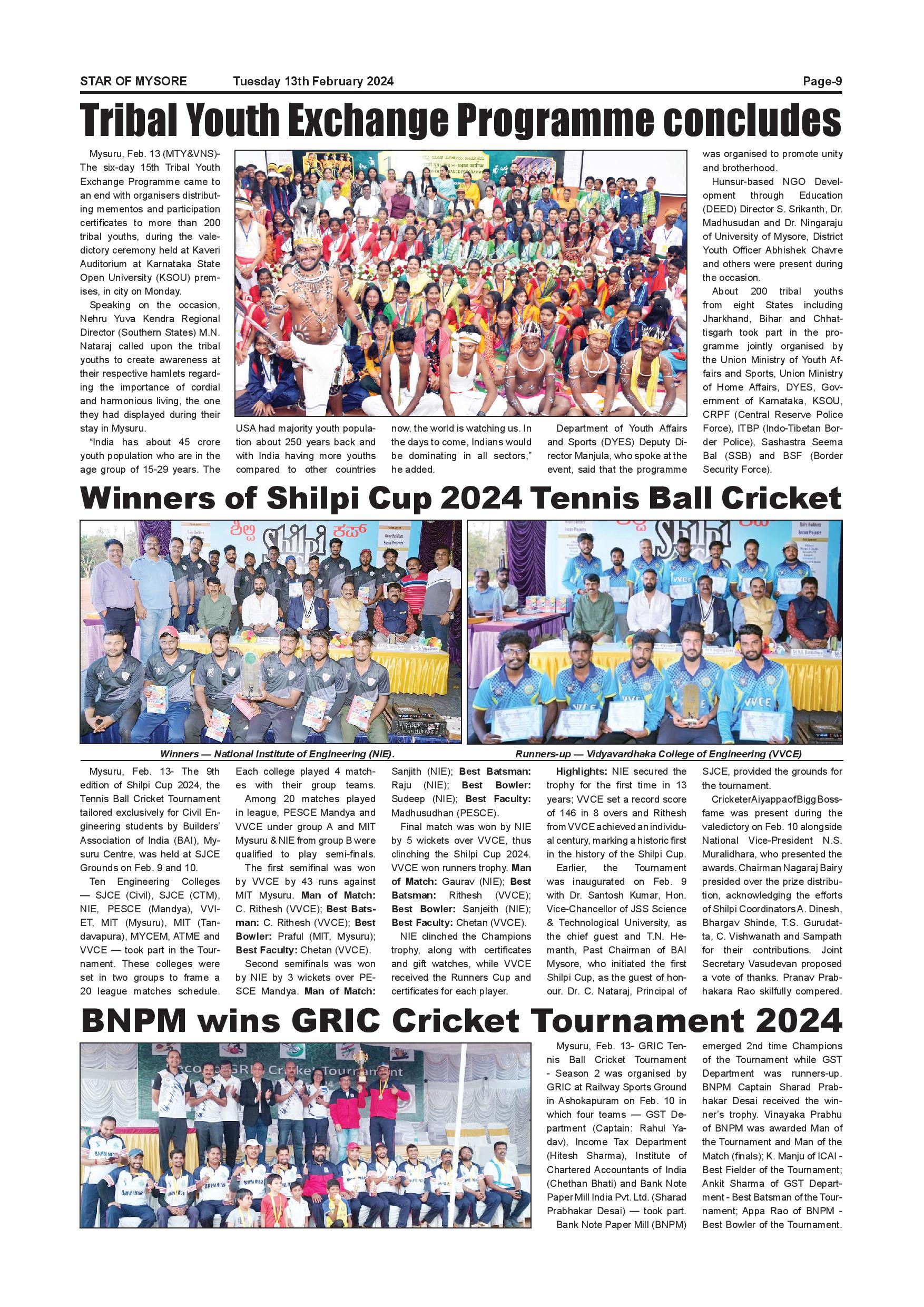Star of Mysore Page: 9 February 13, 2024 << First << 9 >> Last >> Page 1Page 2Page 3Page 4Page 5Page 6Page 7Page 8Page 9Page 10Page 11Page 12 × Star of Mysore << First << 9 >> Last >> SOM-page-001SOM-page-002SOM-page-003SOM-page-004SOM-page-005SOM-page-006SOM-page-007SOM-page-008SOM-page-009SOM-page-010SOM-page-011SOM-page-012 SOM-page-009
