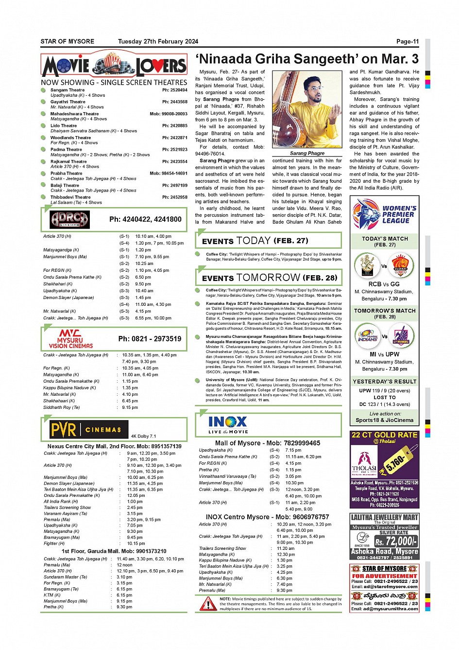 Star of Mysore Page: 11 February 27, 2024 << First << 11 >> Last >> Page 1Page 2Page 3Page 4Page 5Page 6Page 7Page 8Page 9Page 10Page 11Page 12 × Star of Mysore << First << 11 >> Last >> Page-001Page-002Page-003Page-004Page-005Page-006Page-007Page-008Page-009Page-010Page-011Page-012 Page-011