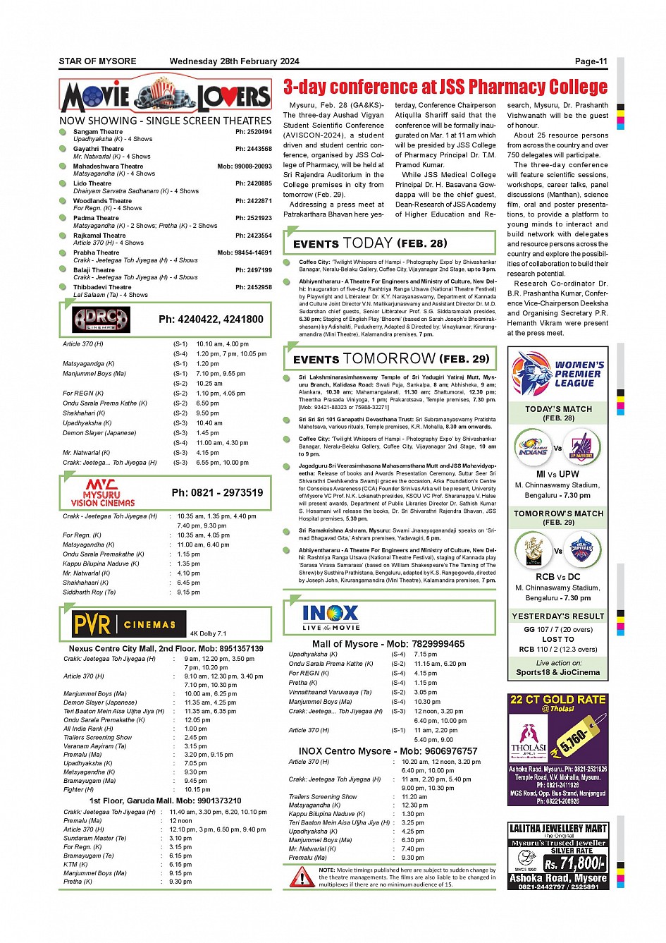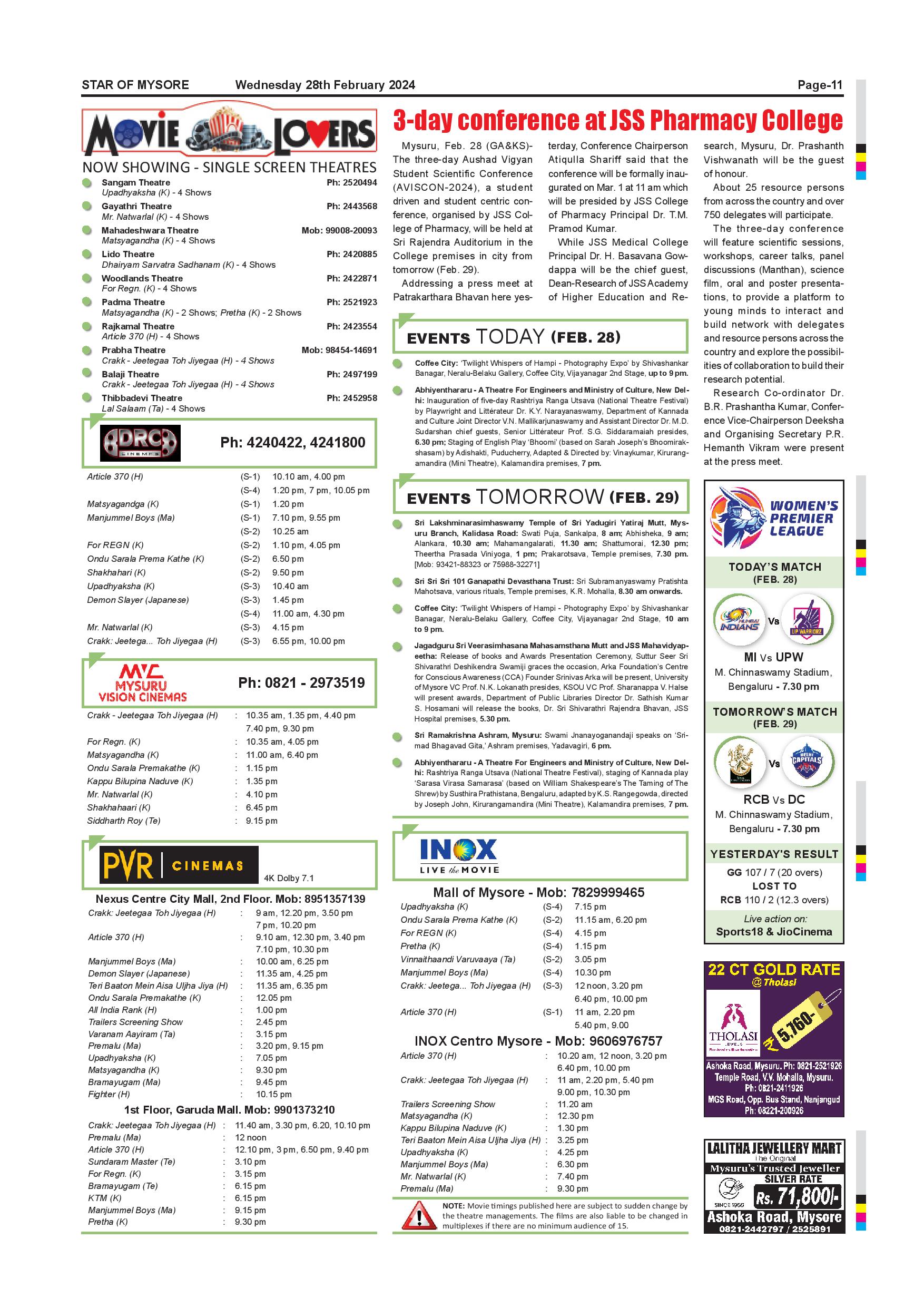 Star of Mysore Page: 11 February 28, 2024 << First << 11 >> Last >> Page 1Page 2Page 3Page 4Page 5Page 6Page 7Page 8Page 9Page 10Page 11Page 12 × Star of Mysore << First << 11 >> Last >> Page-001Page-002Page-003Page-004Page-005Page-006Page-007Page-008Page-009Page-010Page-011Page-012 Page-011