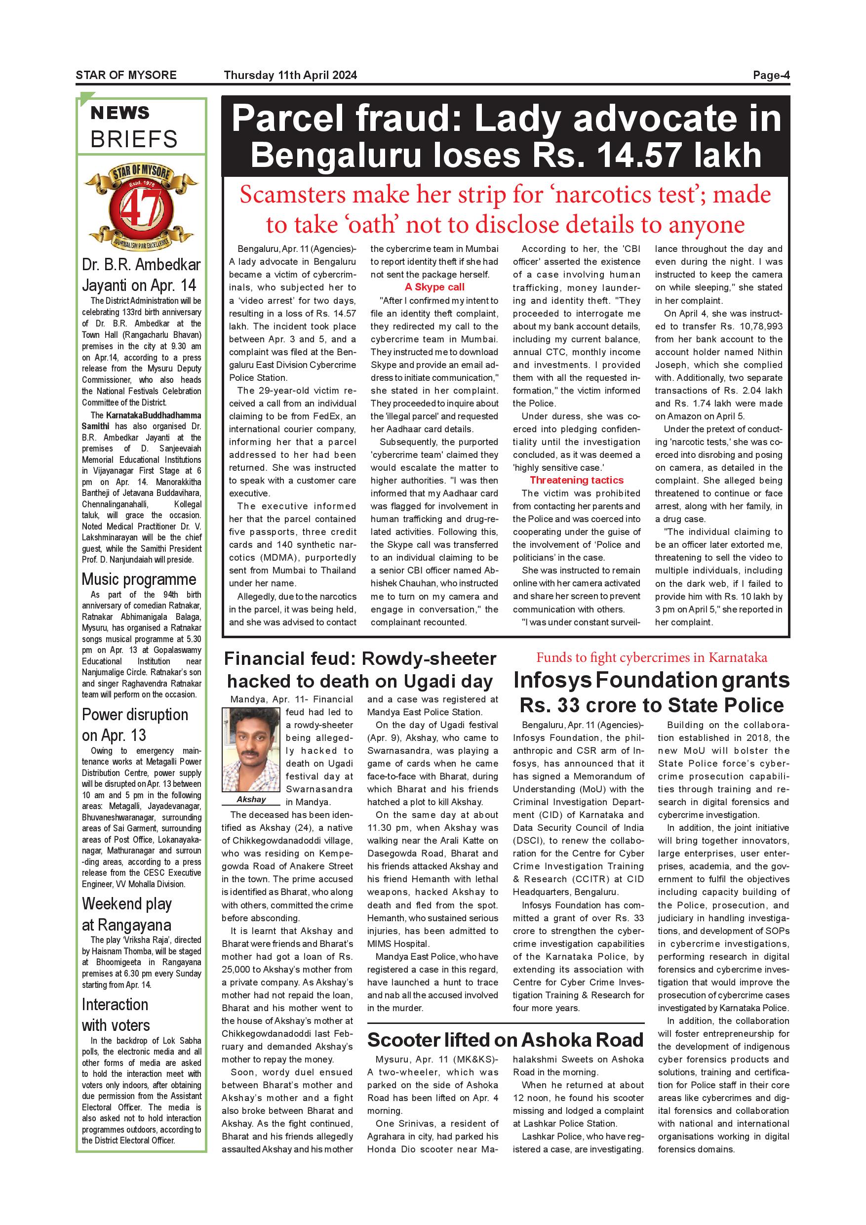 Star of Mysore Page: 4 April 11, 2024 << First << 4 >> Last >> Page 1Page 2Page 3Page 4Page 5Page 6Page 7Page 8Page 9Page 10Page 11Page 12 × Star of Mysore << First << 4 >> Last >> Page-001Page-002Page-003Page-004Page-005Page-006Page-007Page-008Page-009Page-010Page-011Page-012 Page-004