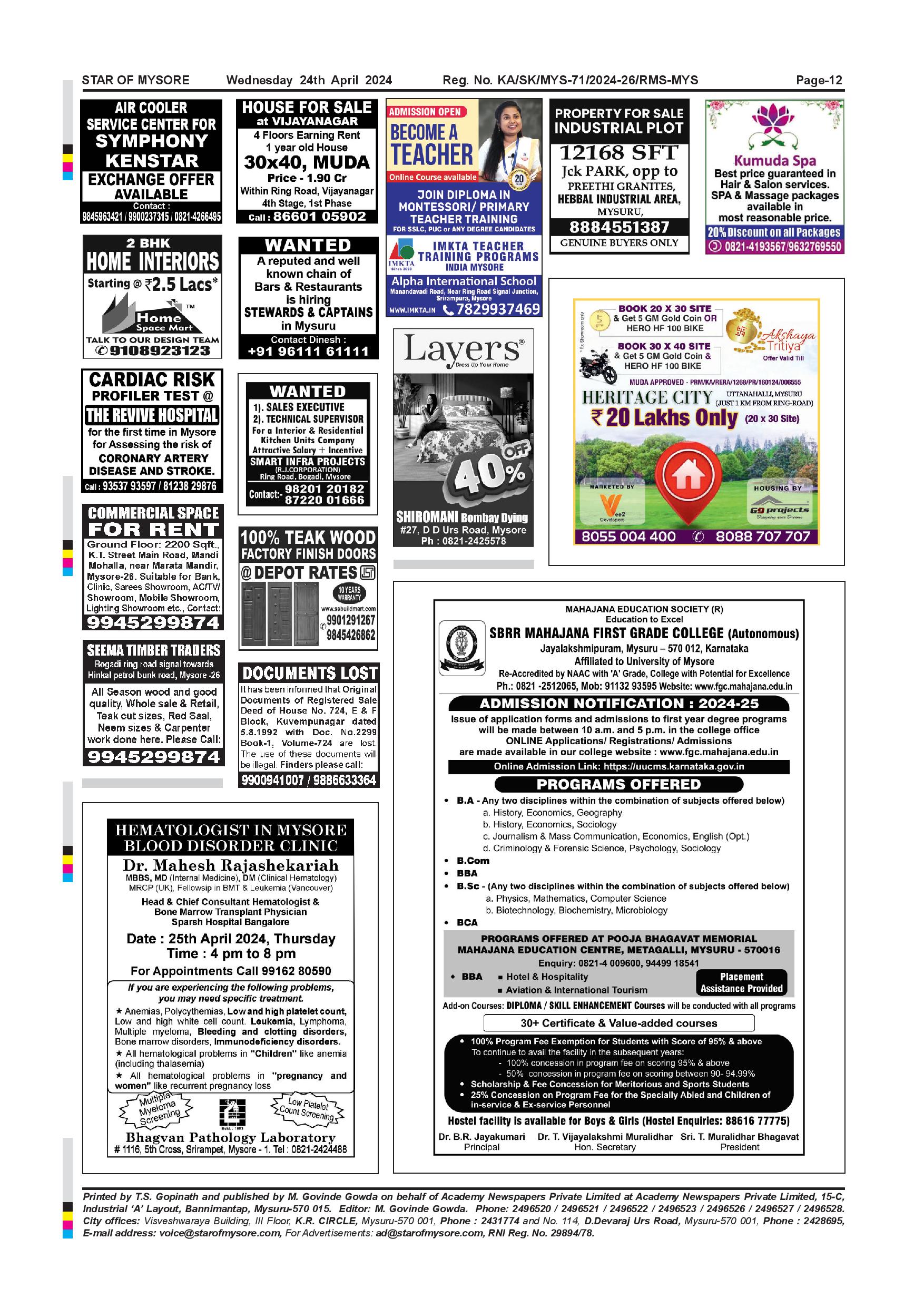 Star of Mysore Page: 12 April 24, 2024 << First << 12 >> Last >> Page 1Page 2Page 3Page 4Page 5Page 6Page 7Page 8Page 9Page 10Page 11Page 12 × Star of Mysore << First << 12 >> Last >> Page-001Page-002Page-003Page-004Page-005Page-006Page-007Page-008Page-009Page-010Page-011Page-012 Page-012