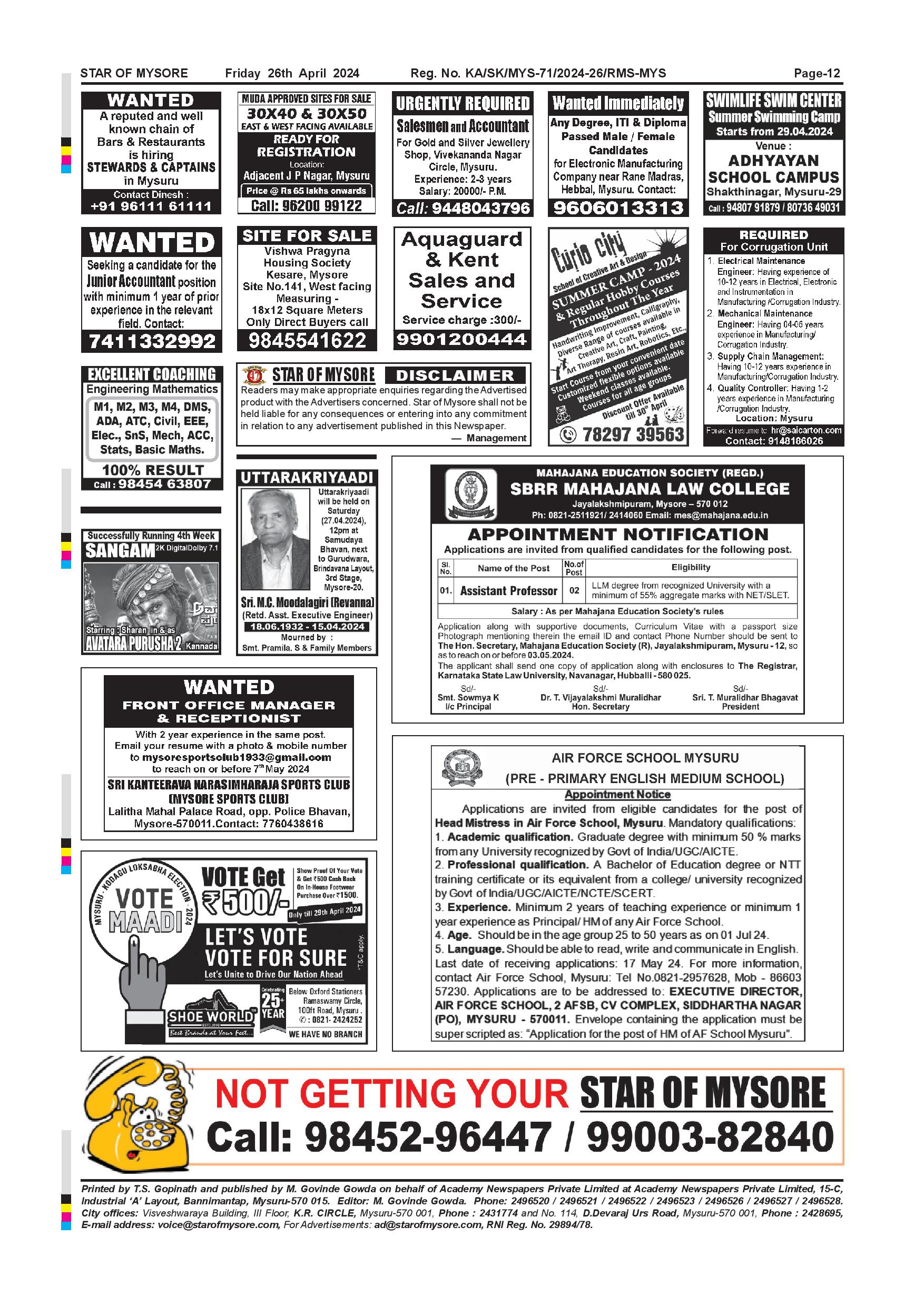 Star of Mysore Page: 12 April 26, 2024 << First << 12 >> Last >> Page 1Page 2Page 3Page 4Page 5Page 6Page 7Page 8Page 9Page 10Page 11Page 12 × Star of Mysore << First << 12 >> Last >> Page 001Page 002Page 003Page 004Page 005Page 006Page 007Page 008Page 009Page 010Page 011Page 012 Page 012
