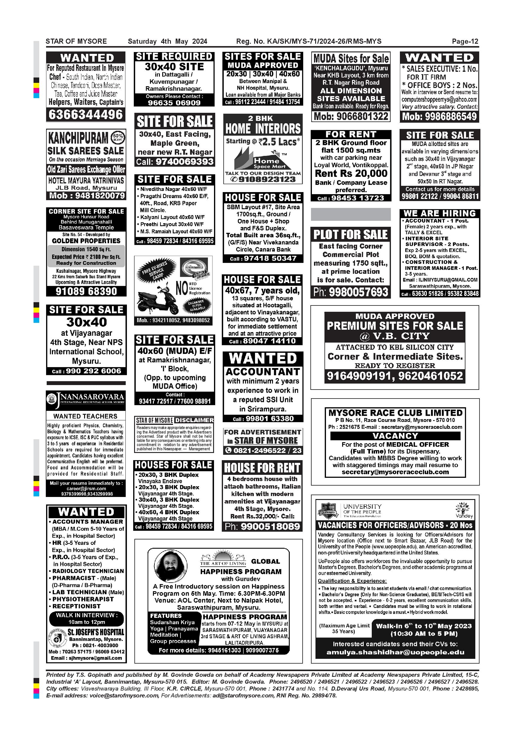 Star of Mysore Page: 12 May 04, 2024 << First << 12 >> Last >> Page 1Page 2Page 3Page 4Page 5Page 6Page 7Page 8Page 9Page 10Page 11Page 12 × Star of Mysore << First << 12 >> Last >> Page-1Page-2Page-3Page-4Page-5Page-6Page-7Page-8Page-9Page-10Page-11Page-12 Page-12