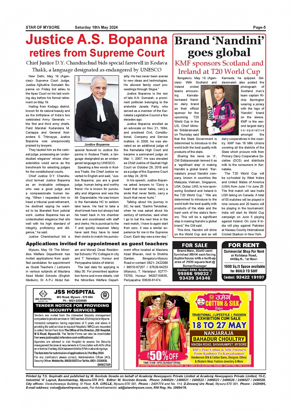 Star of Mysore Page: 5 May 18, 2024 << First << 5 >> Last >> Page 1Page 2Page 3Page 4Page 5Page 6Page 7Page 8Page 9Page 10Page 11Page 12 × Star of Mysore << First << 5 >> Last >> Page-001Page-002Page-003Page-004Page-005Page-006Page-007Page-008Page-009Page-010Page-011Page-012 Page-005