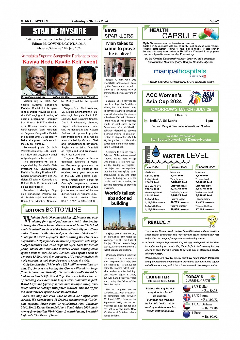 Star of Mysore Page: 2 July 27, 2024 << First << 2 >> Last >> Page 1Page 2Page 3Page 4Page 5Page 6Page 7Page 8Page 9Page 10Page 11Page 12 × Star of Mysore << First << 2 >> Last >> Page-001Page-002Page-003Page-004Page-005Page-006Page-007Page-008Page-009Page-010Page-011Page-012 Page-002