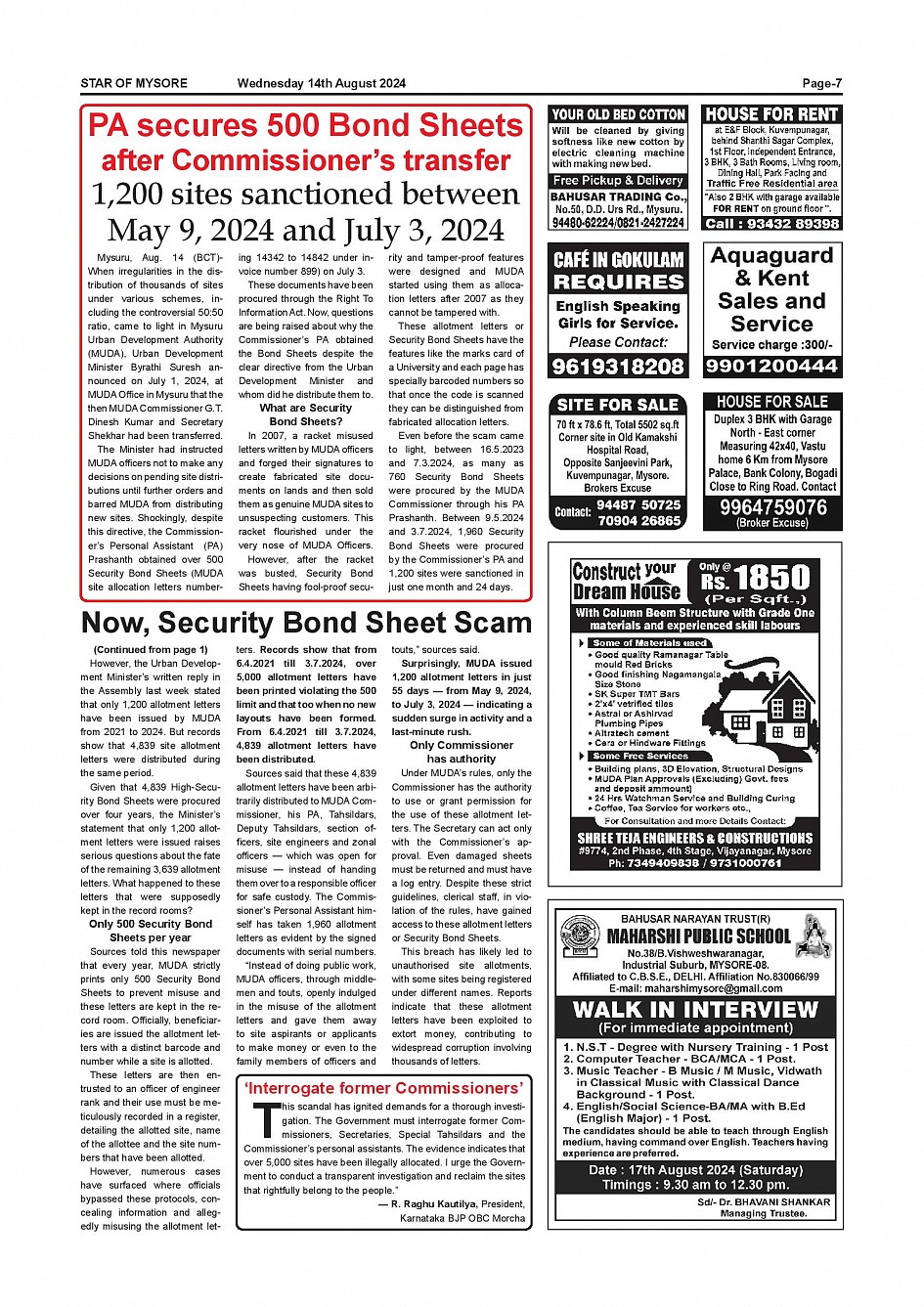 Star of Mysore Page: 7 August 14, 2024 << First << 7 >> Last >> Page 1Page 2Page 3Page 4Page 5Page 6Page 7Page 8Page 9Page 10Page 11Page 12Page 13Page 14Page 15 × Star of Mysore << First << 7 >> Last >> Page-001Page-002Page-003Page-004Page-005Page-006Page-007Page-008-009Page-010Page-011Page-012Page-013Page-014Page-015Page-016 Page-007
