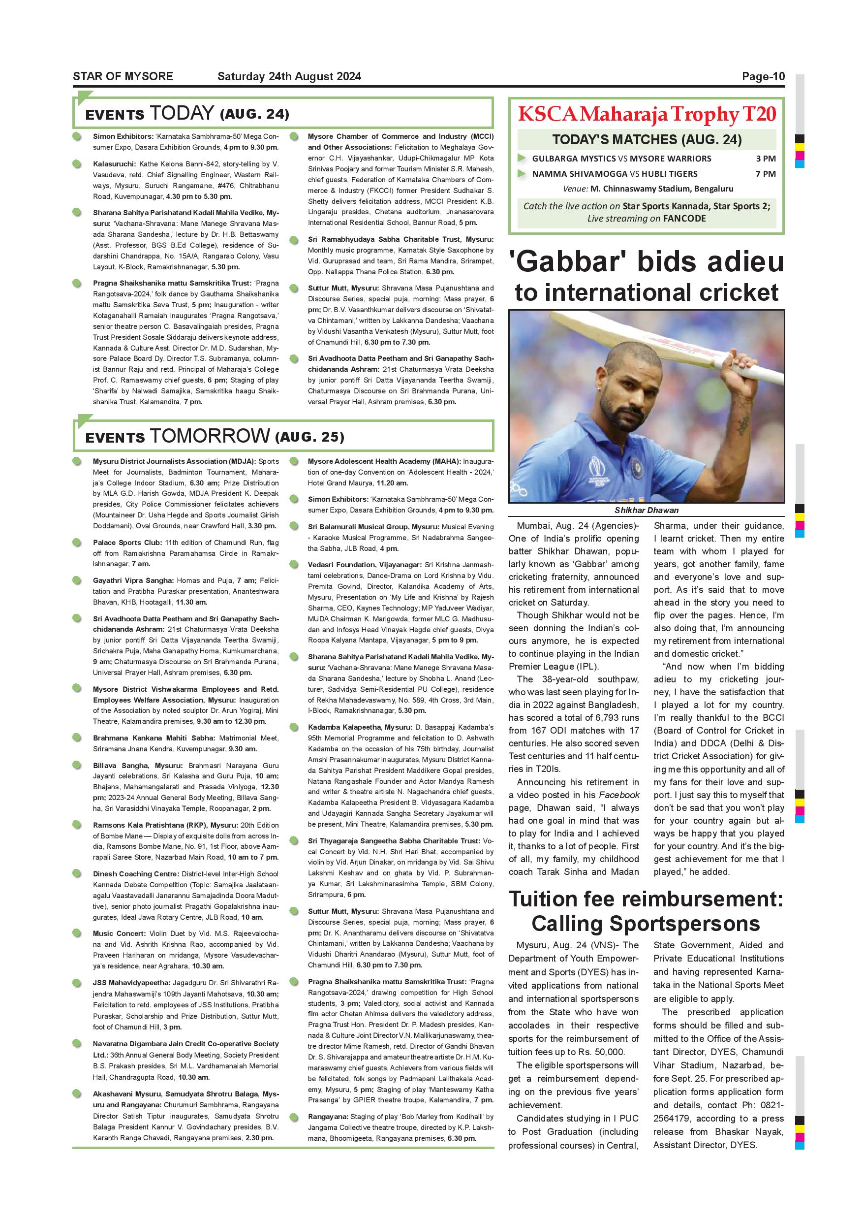 Star of Mysore Page: 10 August 24, 2024 << First << 10 >> Last >> Page 1Page 2Page 3Page 4Page 5Page 6Page 7Page 8Page 9Page 10Page 11Page 12 × Star of Mysore << First << 10 >> Last >> Page-001Page-002Page-003Page-004Page-005Page-006Page-007Page-008Page-009Page-010Page-011Page-012 Page-010