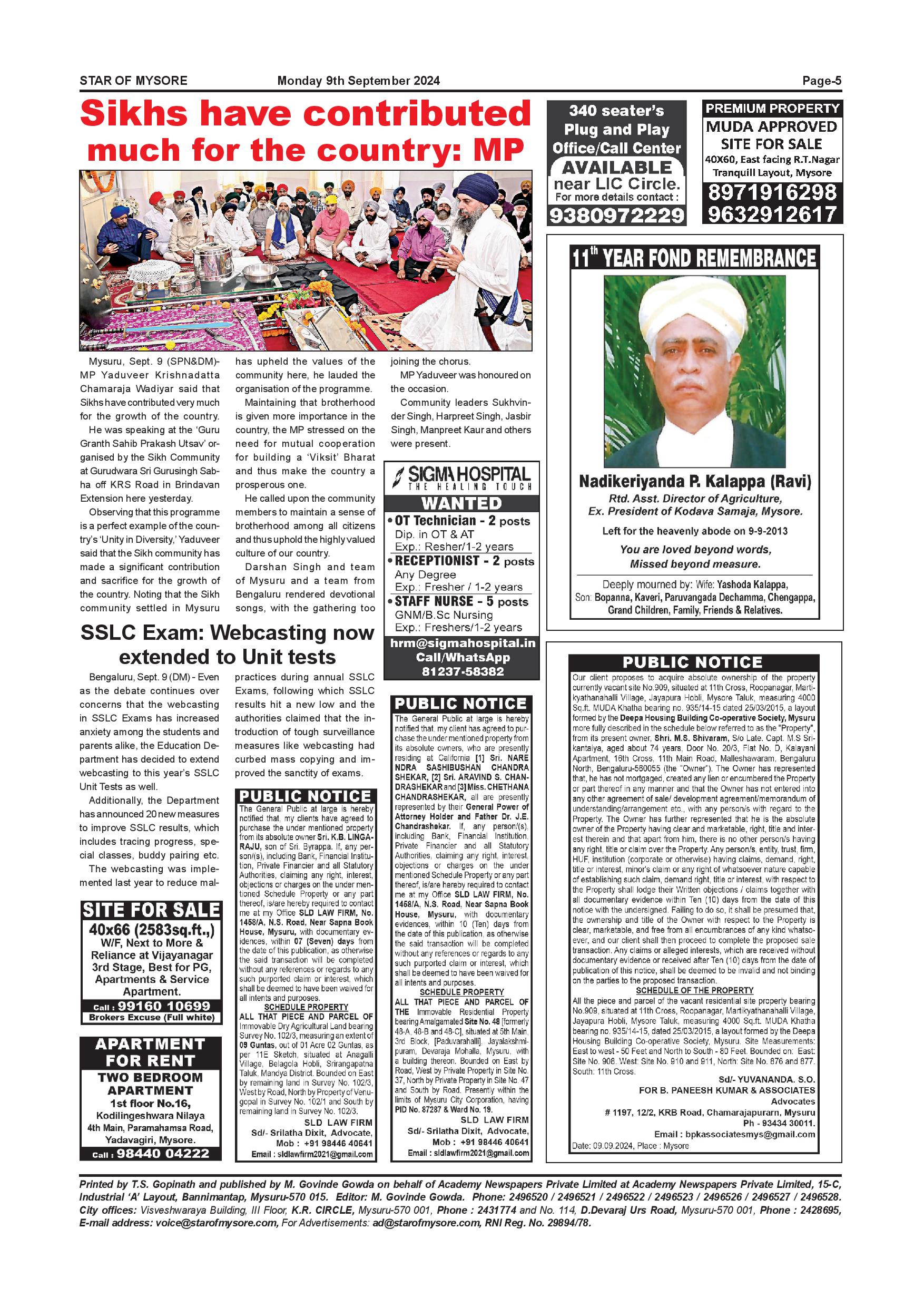 Star of Mysore Page: 5 September 09, 2024 << First << 5 >> Last >> Page 1Page 2Page 3Page 4Page 5Page 6Page 7Page 8Page 9Page 10Page 11Page 12 × Star of Mysore << First << 5 >> Last >> Page-001Page-002Page-003Page-004Page-005Page-006Page-007Page-008Page-009Page-010Page-011Page-012 Page-005