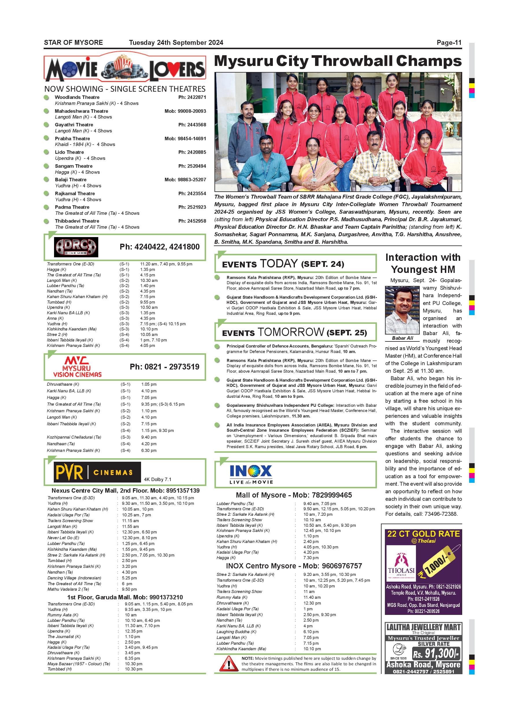 Star of Mysore Page: 11 September 24, 2024 << First << 11 >> Last >> Page 1Page 2Page 3Page 4Page 5Page 6Page 7Page 8Page 9Page 10Page 11Page 12 × Star of Mysore << First << 11 >> Last >> SOM-page-001SOM-page-002SOM-page-003SOM-page-004SOM-page-005SOM-page-006SOM-page-007SOM-page-008SOM-page-009SOM-page-010SOM-page-011SOM-page-012 SOM-page-011
